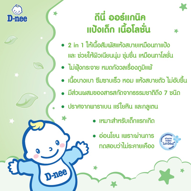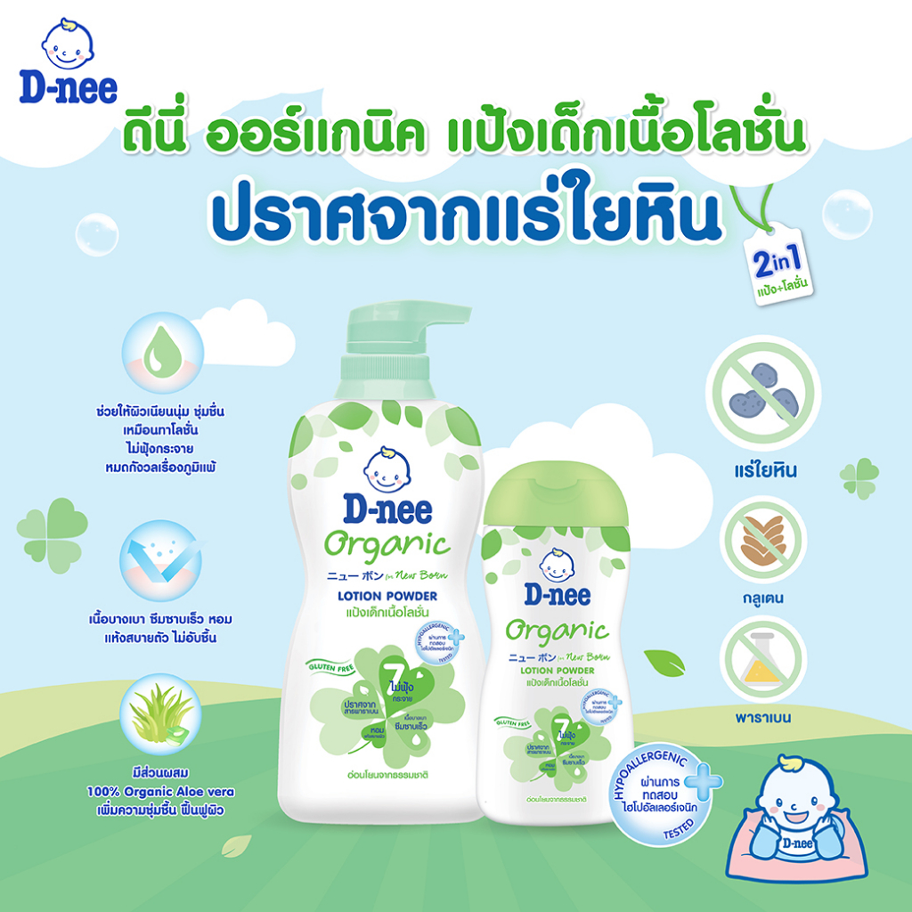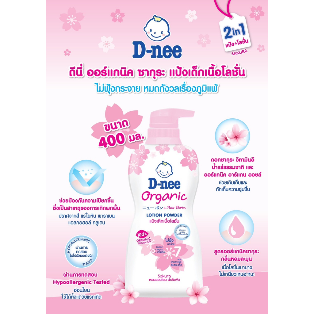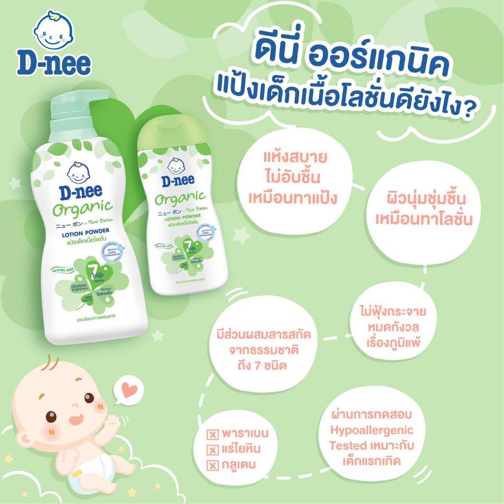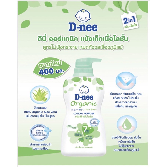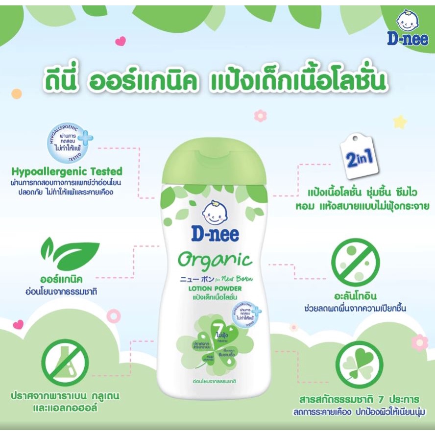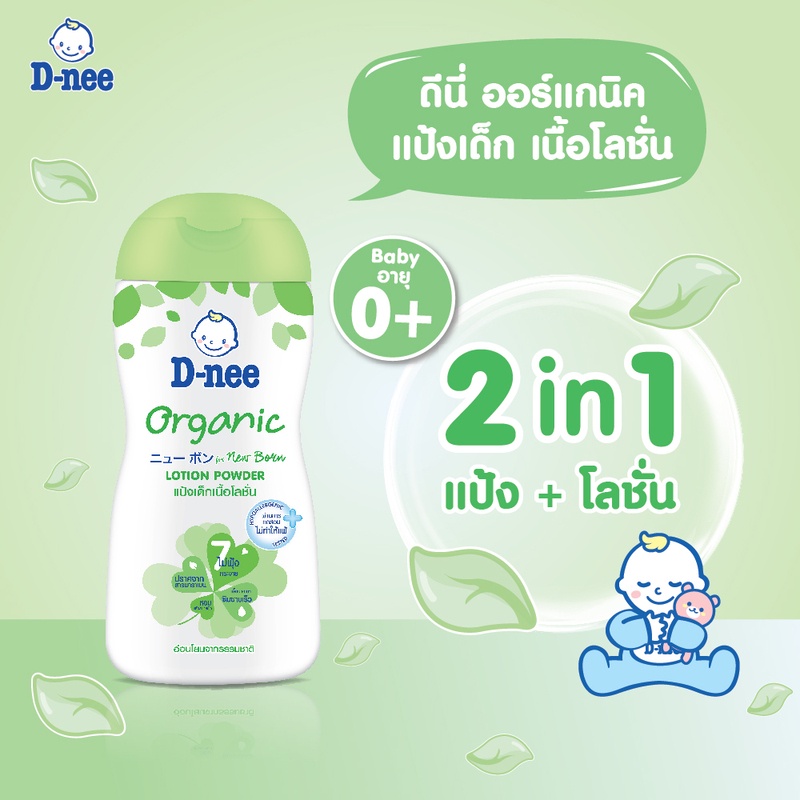 D-nee ดีนี่ ออร์แกนิค นิวบอร์น แป้งเด็กเนื้อโลชั่น กลิ่นหอม (180/400 มล.) แป้งเนื้อโลชั่น สูตรอ่อนโยน