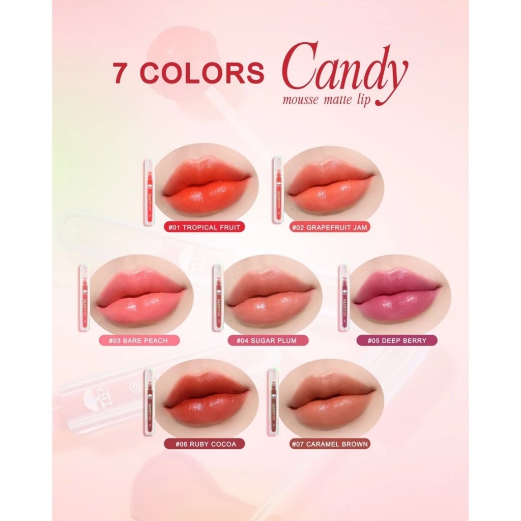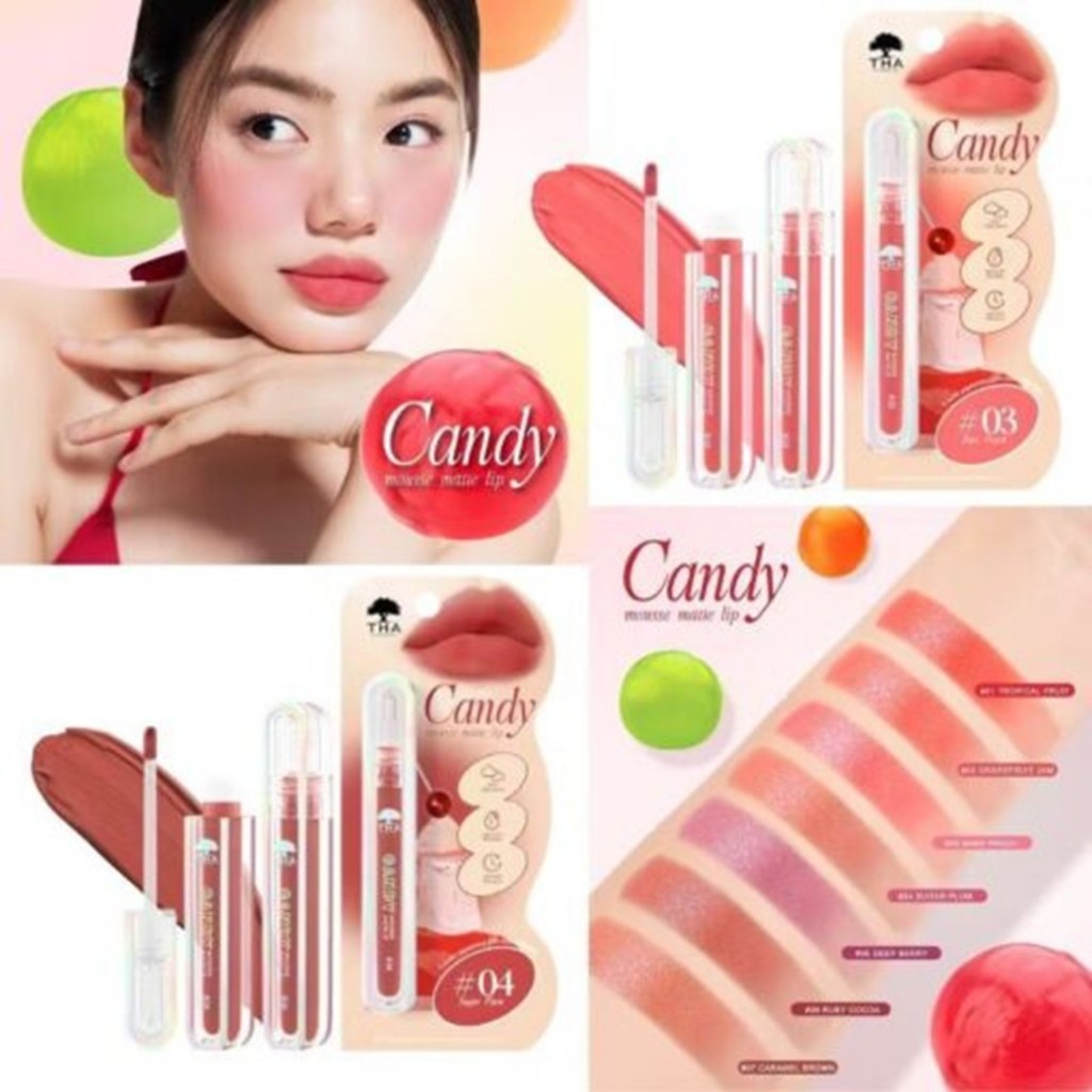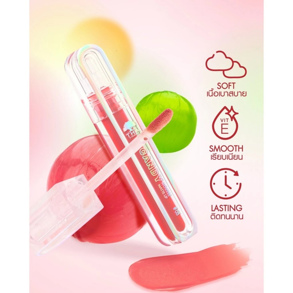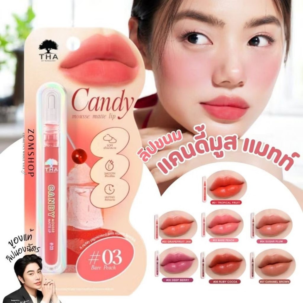 ลิปซอฟต์แมทท์【แคนดี้มูสแมทท์】กลิ่นหอมผลไม้ Candy Mousse Matte Lip 2.5g THA BY NONGCHAT