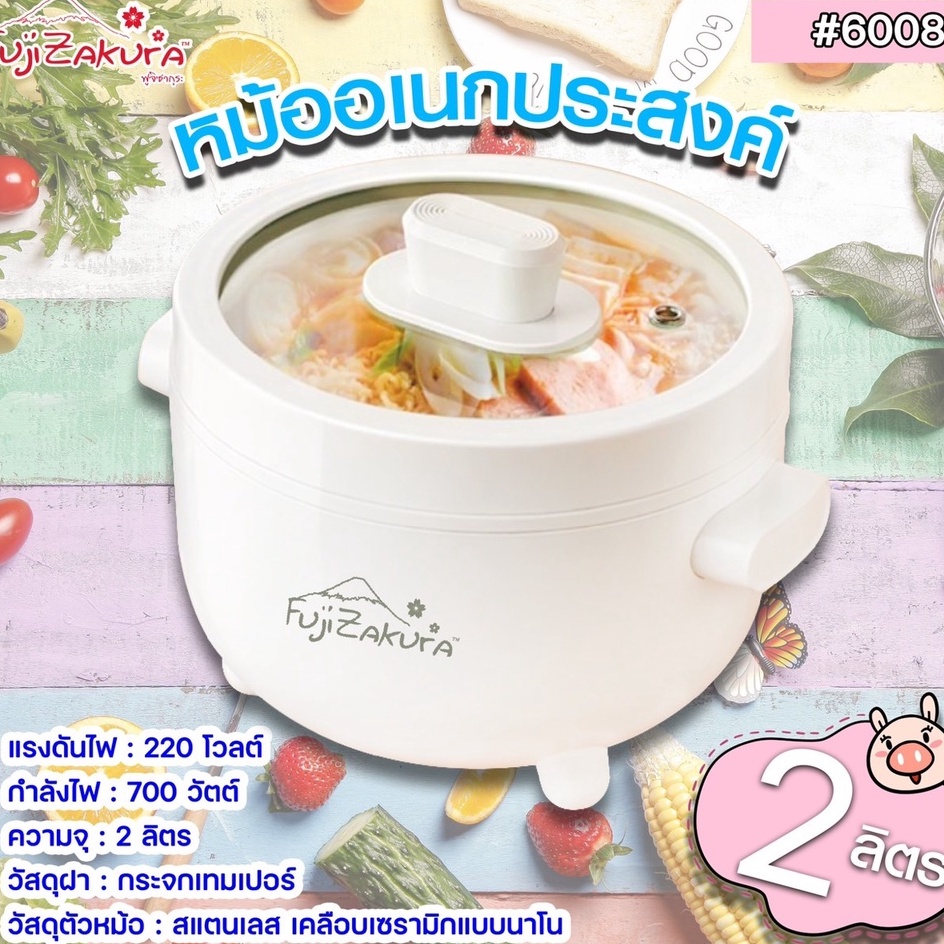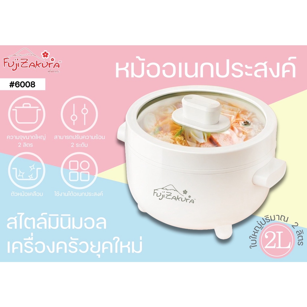 Fujizakura หม้ออเนกประสงค์ ขนาด 2 ลิตร หม้อสไตล์มินิมอล สารพัดประโยชน์ ฟูจิซากุระ หม้อสุกี้ หม้อชาบู กระทะไฟฟ้า หม้อต้ม
