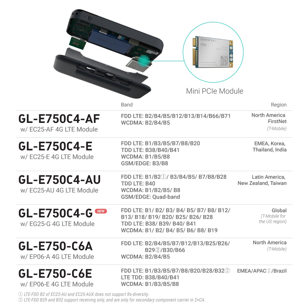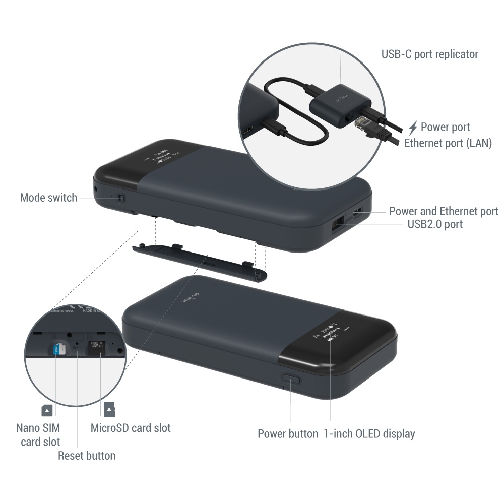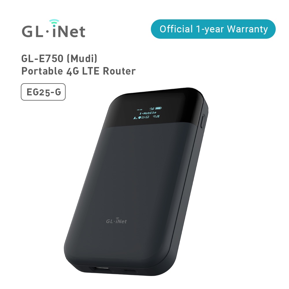 GL.iNet GL-E750 (MUDI) 4G LTE OpenWrt VPN Router, 128GB Max MicroSD, EMEA (ติดตั้งโมดูล EP06-E), แบตเตอรี่ 7000mAh, OpenVPN, WireGuard, Tor