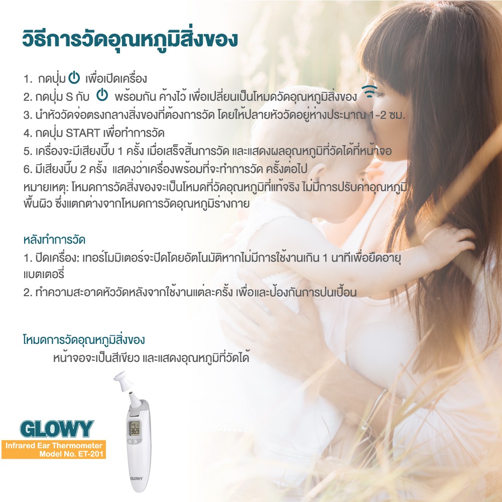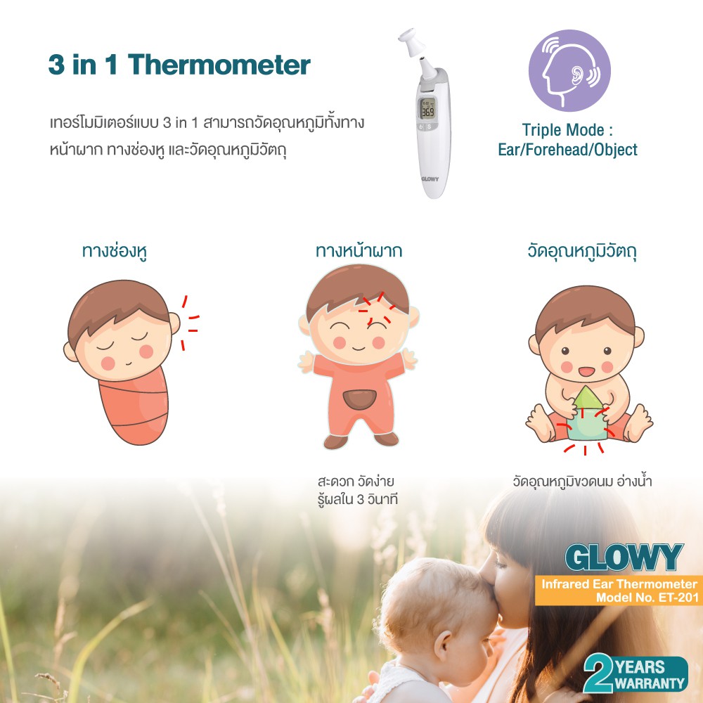 GLOWY Infrared Ear Thermometer (ET 201) เทอร์โมมิเตอร์อินฟราเรด 3 in 1 ยิงหน้าผาก, หู แม่นยำสูง