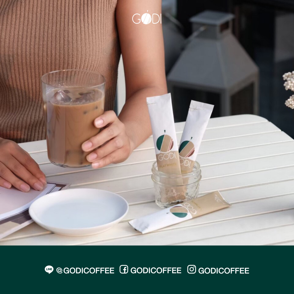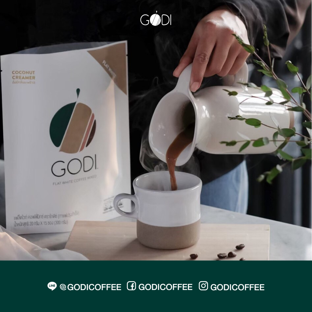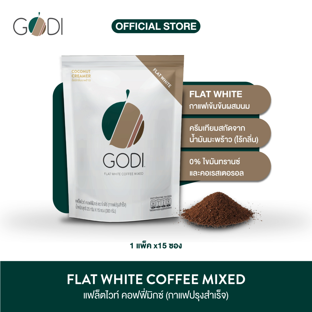 GODI FLAT WHITE COFFEE MIXED กาแฟแฟล็ตไวท์ คอฟฟี่มิกซ์ ตราโกดีซ์ (กาแฟปรุงสำเร็จ เกรดพรีเมี่ยม )