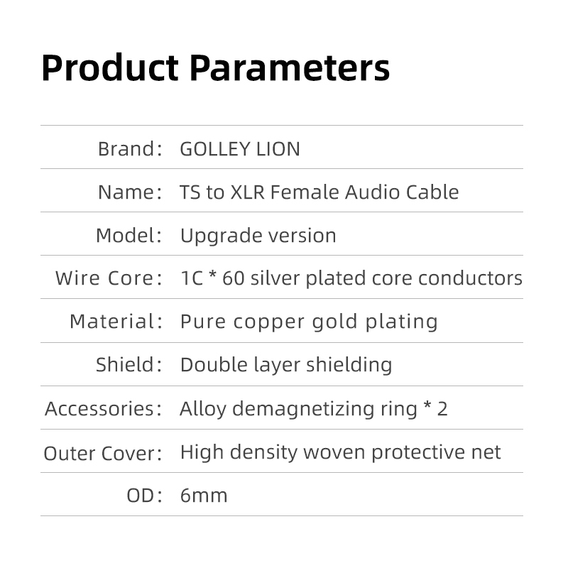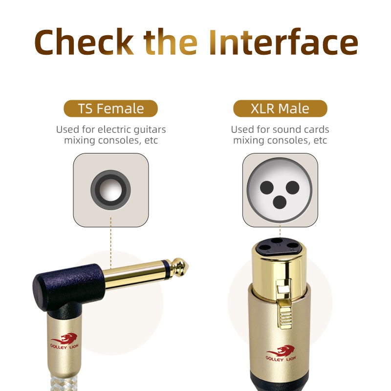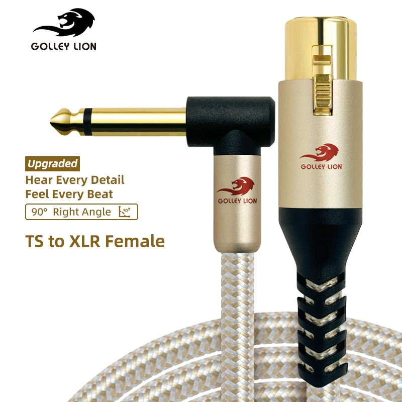 GOLLEY LION Right-Angle 1/4 TS to XLR Female Cable, Nylon Braided Microphone Cable TS 6.35mm Mono Jack Unbalance Heavy Duty Microphone Cable