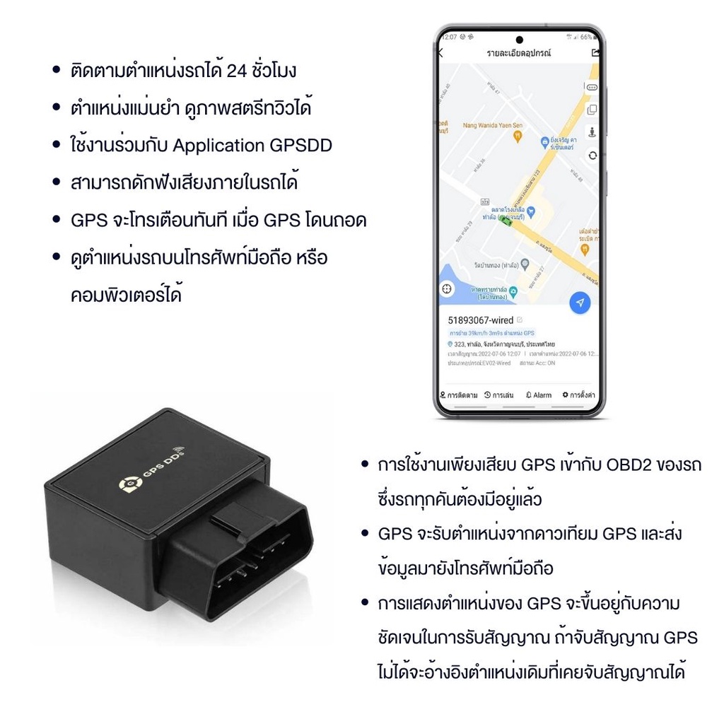 GPSDD รุ่น GDDT08 GPS แบบเรียลทาม สำหรับ รถยนต์ทุกชนิด ดักฟังเสียงได้ ติดตั้งง่ายโดยเสียบ พอร์ต OBD2