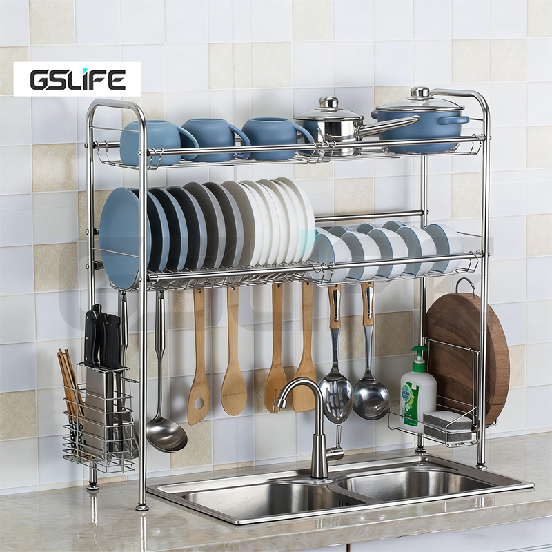 GSlife ชั้นวางจาน 2ชั้น ที่คว่ำ จาน 60/80/90/100ซม สแตนเลส ชั้นวางของในครัว