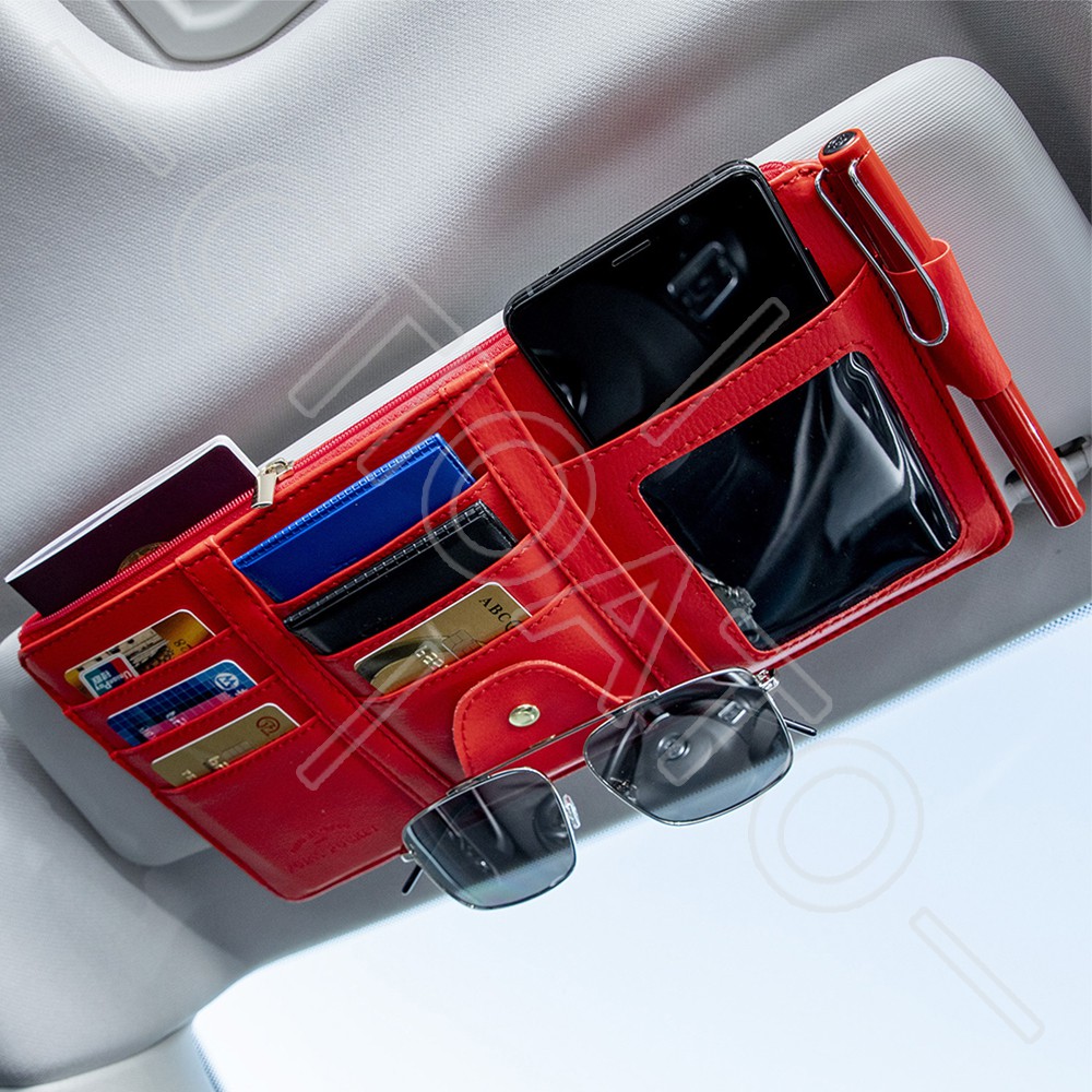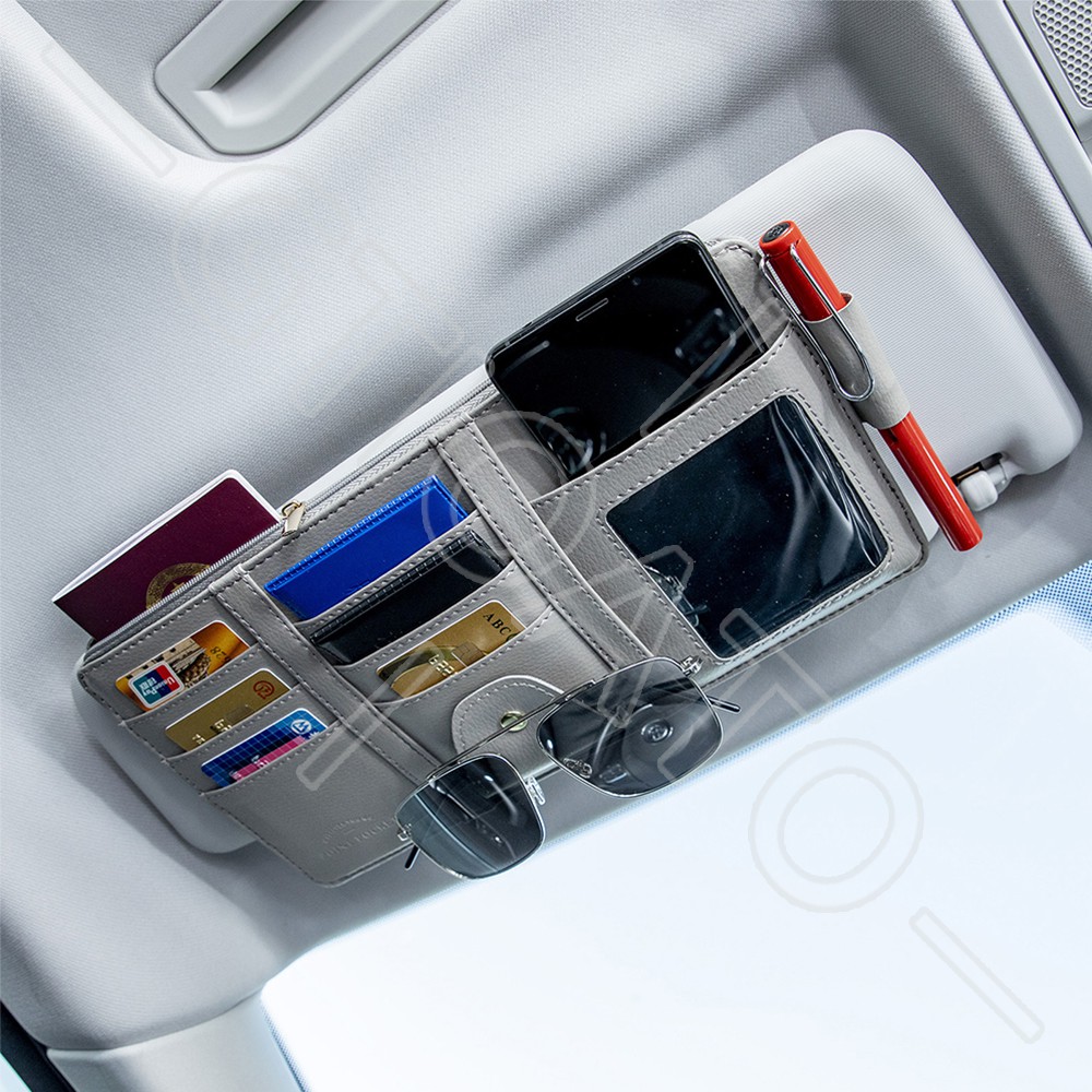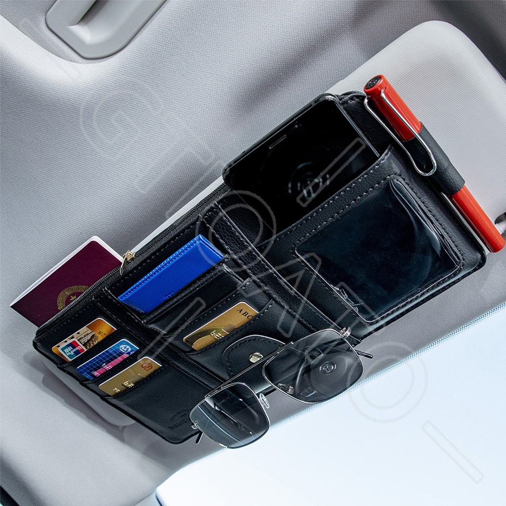 GTIOATO ที่บังแดดรถยนต์ ที่เก็บของในรถ หนัง PU สากล ที่ยึดในรถยนต์ ที่ใส่เก็บบิล ปากกา นามบัตร กล่องแว่นกันแดด