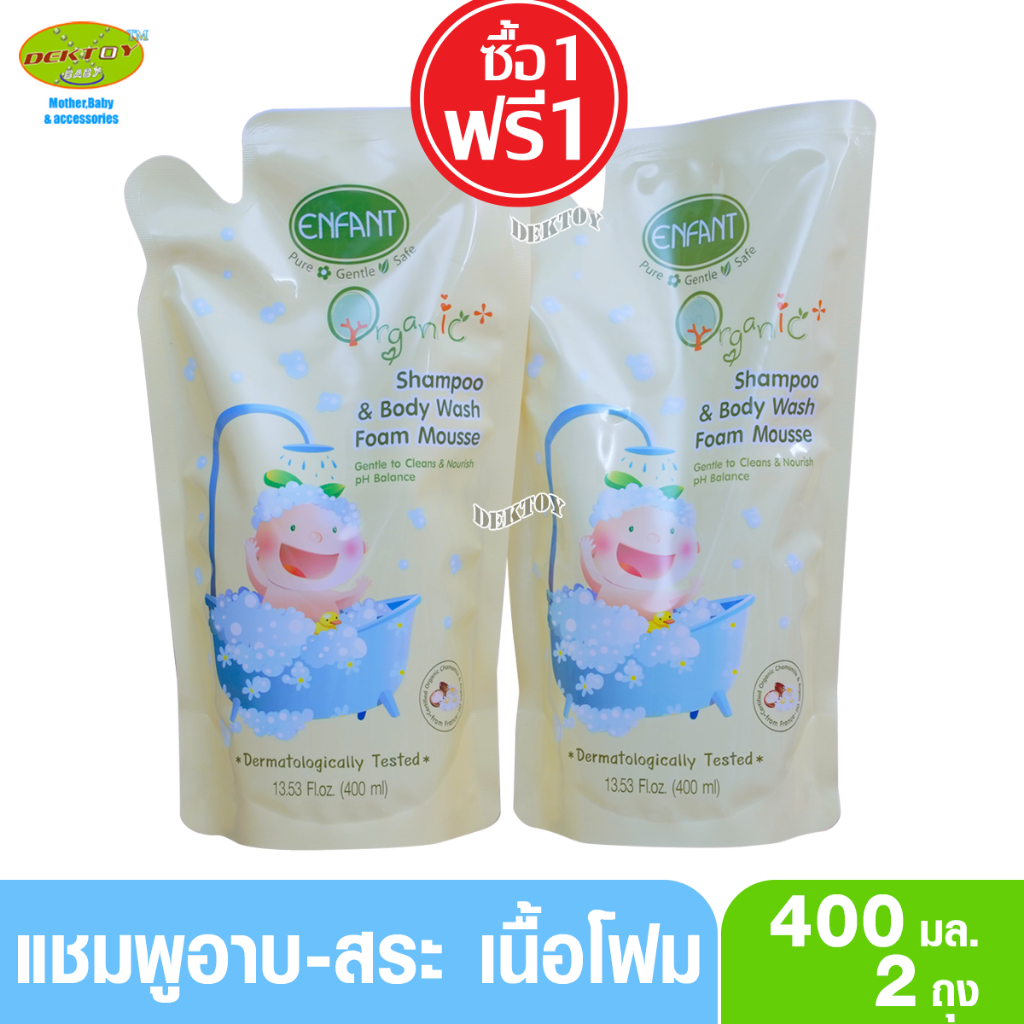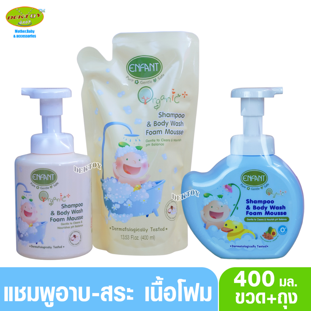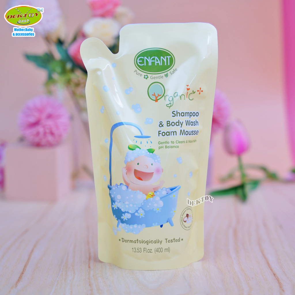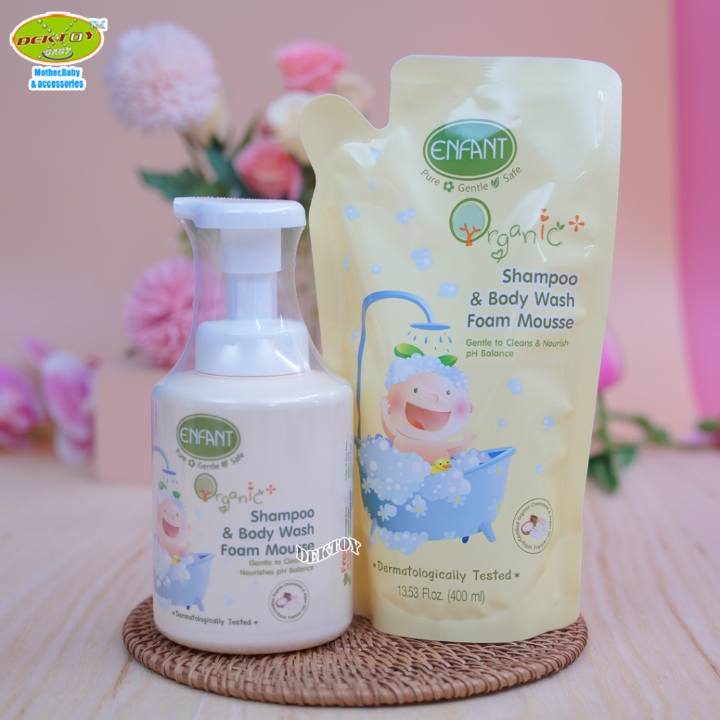 Enfant อองฟองต์ โฟมมูสอาบน้ำสระผม ออแกนิค พลัส แชมพู แอนด์ บอดี้ วอช โฟม มูส 400 มล.
