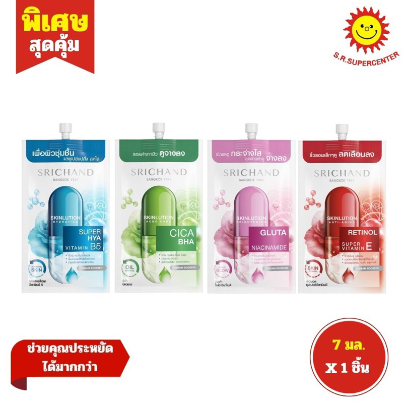 Srichand ศรีจันทร์ สกินลูชั่น เซรั่ม ครีม บูสเตอร์7มล 1ซอง