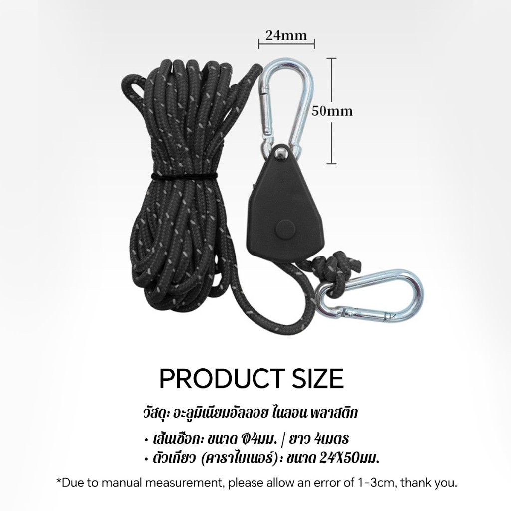 เชือกรอกสำหรับกางเต็นท์สายยาว4เมตร ตั้งแคมป์พร้อมเชือกสายสะท้อนแสง ลูกรอกอย่างดี ทนแรงดึงไม่เป็นสนิม ใช้ง่าย Tent pulley