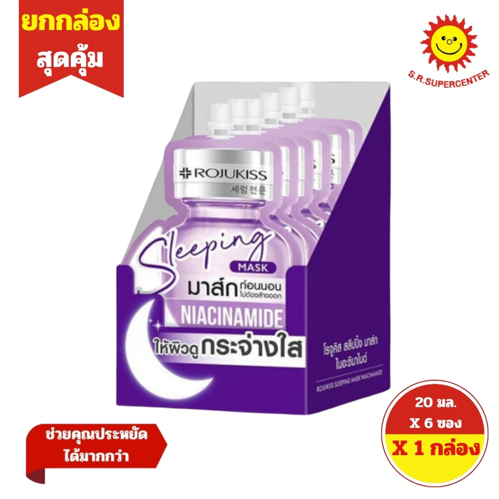 [ 1กล่อง ] Rojukiss Sleeping Mask โรจูคิส สลีปปิ้ง มาส์ก 20 มล. (1กล่อง6ซอง) คละสูตร