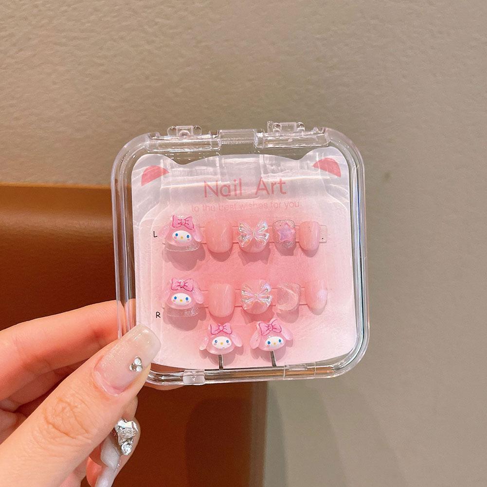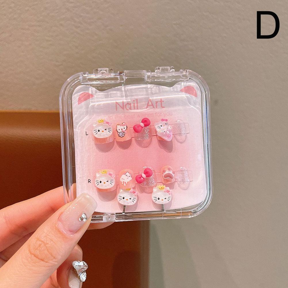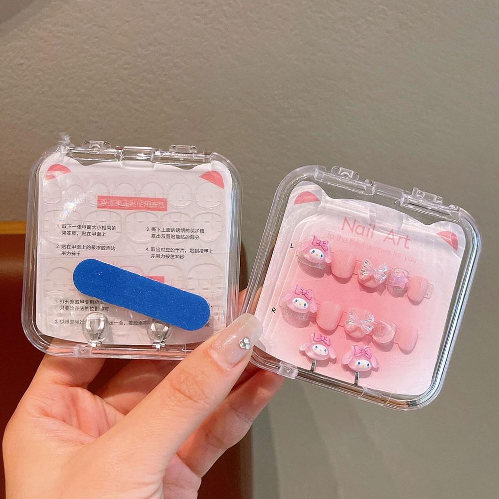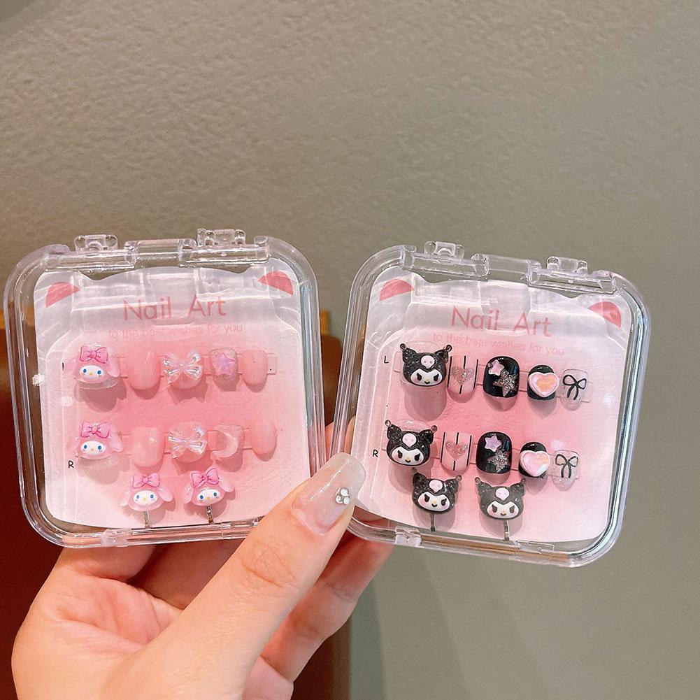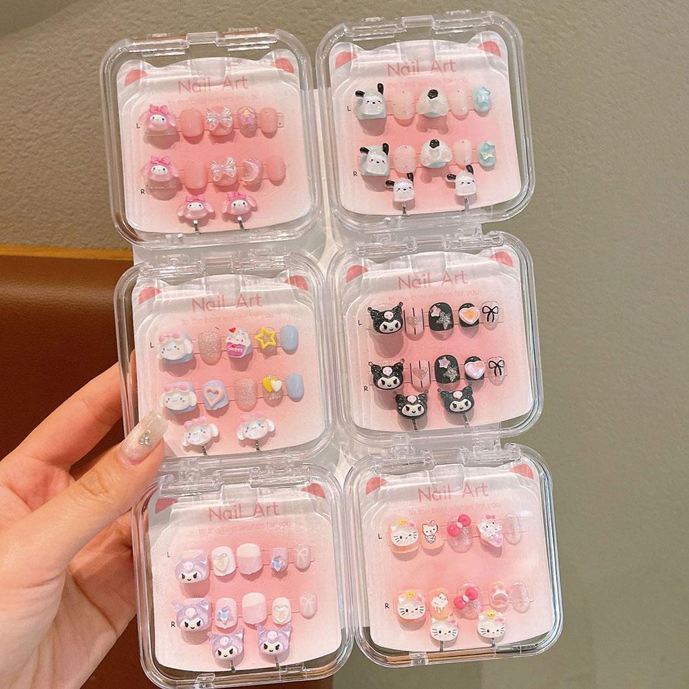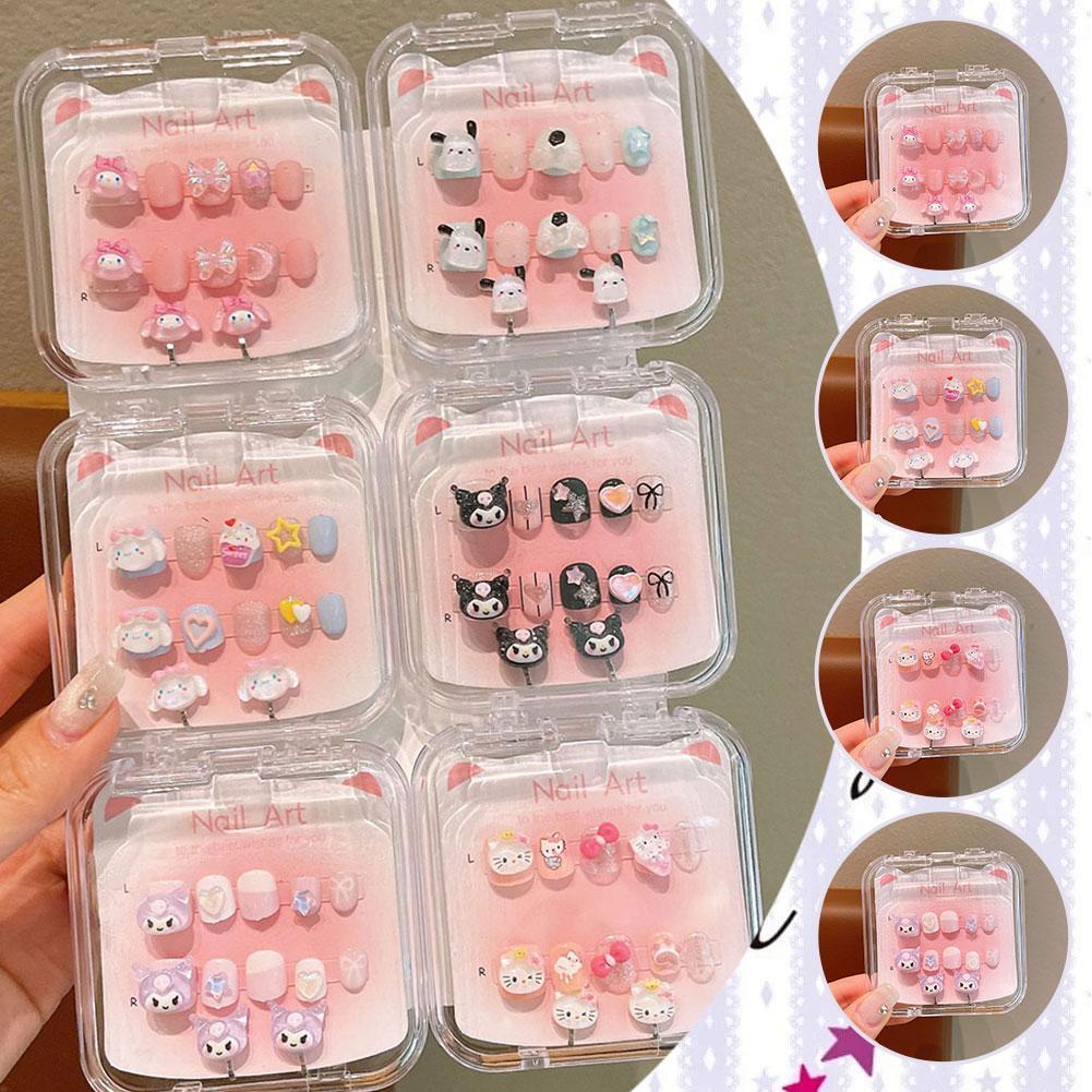 Sanrio เด็กสวมใส่เล็บ 3d การ์ตูนเล็บ + ชิ้นสวมใส่คู่เล็บเครื่องมือ K9s0