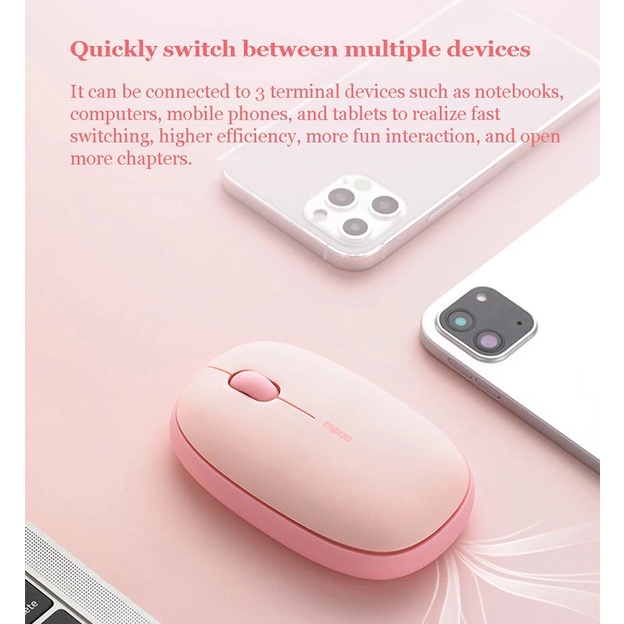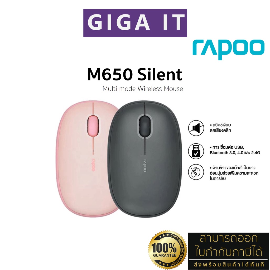 Rapoo เมาส์ไร้เสียงรบกวน M650 Silent Multi-mode Wireless Mouse (with 1300DPI Bluetooth 3.0, 4.0 and 2.4 GHz) ประกัน 2 ปี