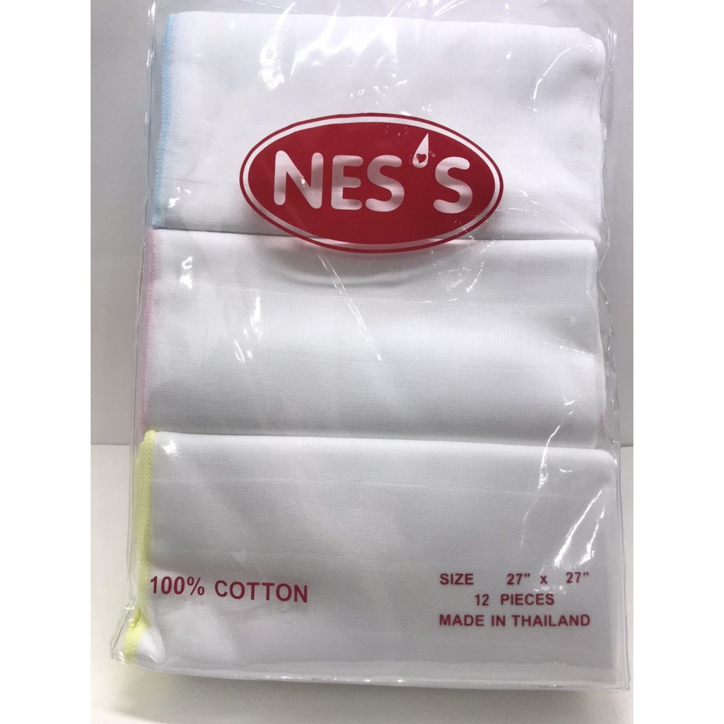 ผ้าอ้อมผ้าสาลู เนื้ออองฟอง NES ขนาด(27*27) 1โหล สีขาว ผ้านิ่มมาก