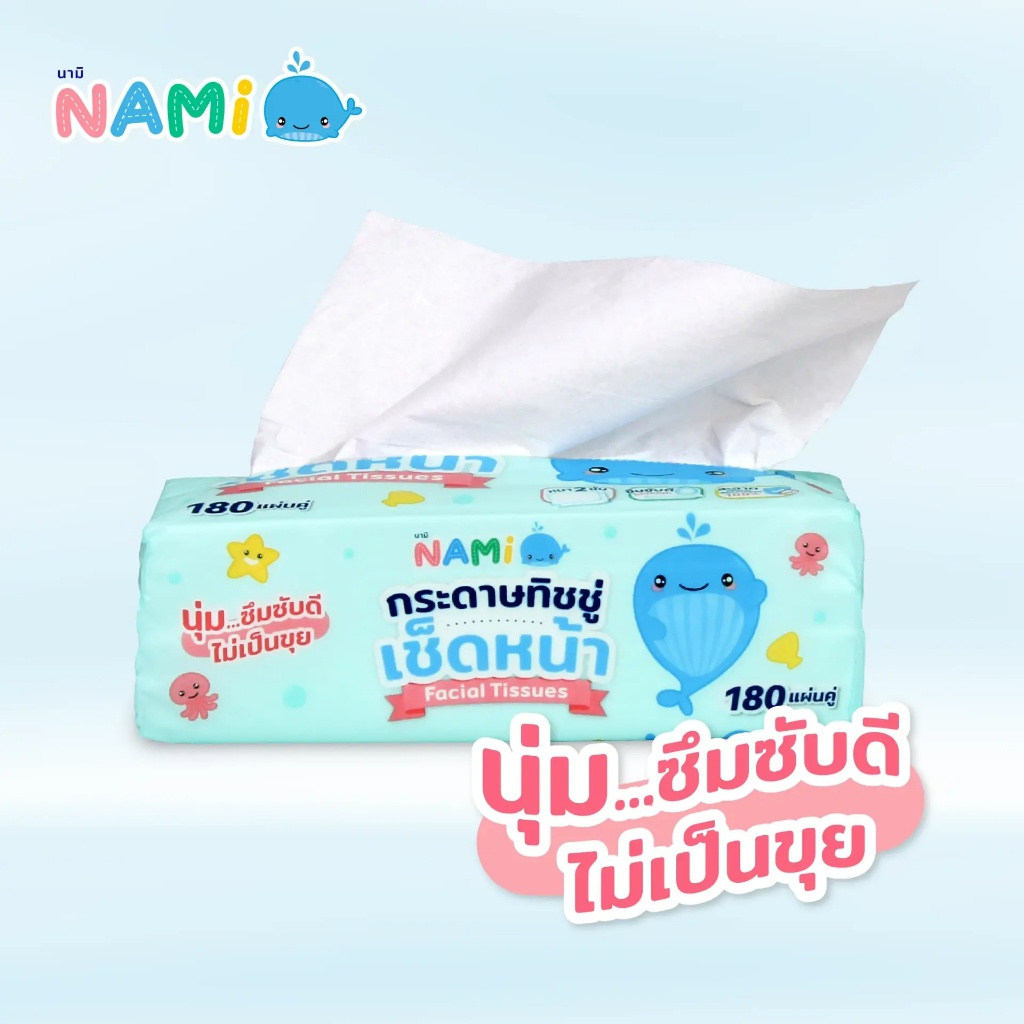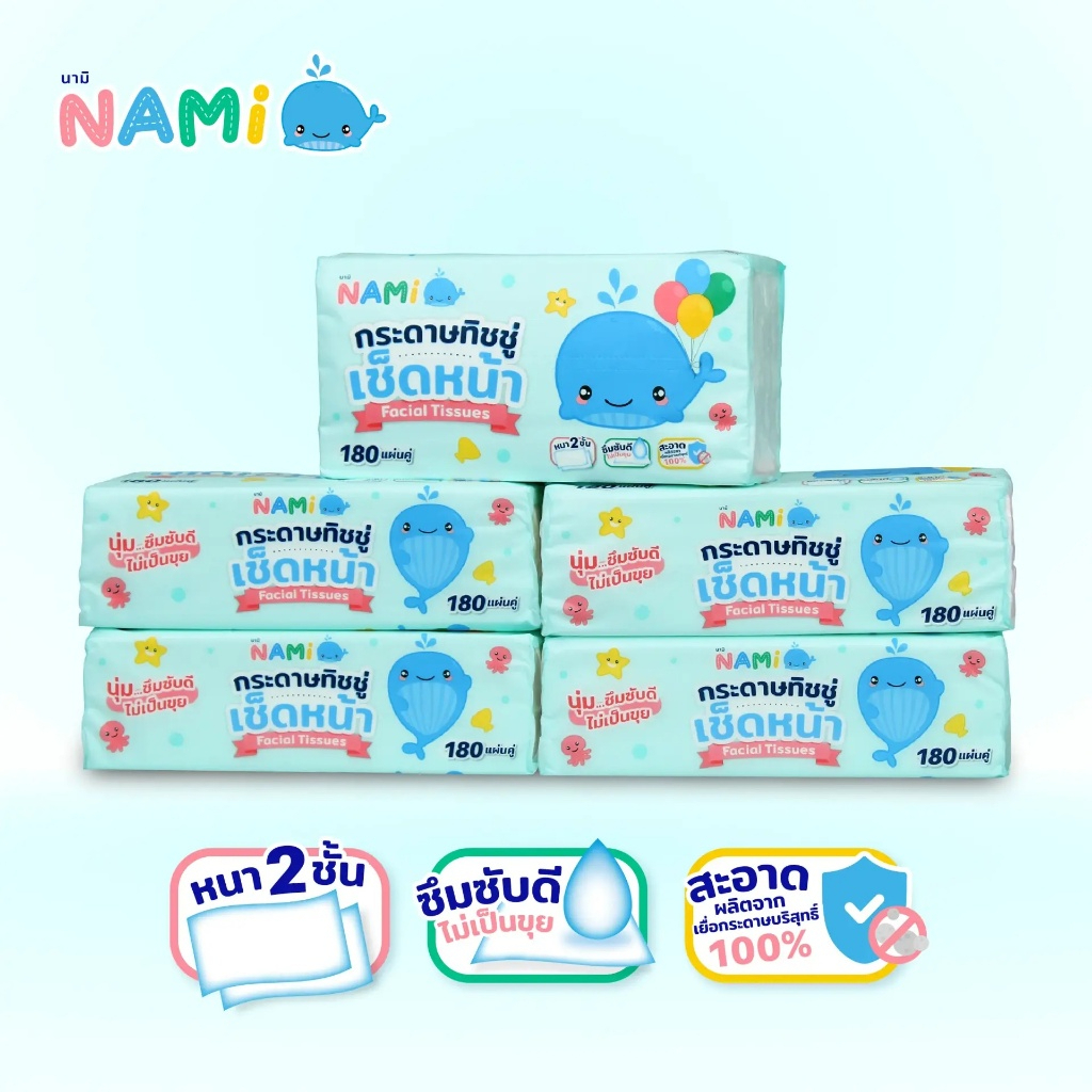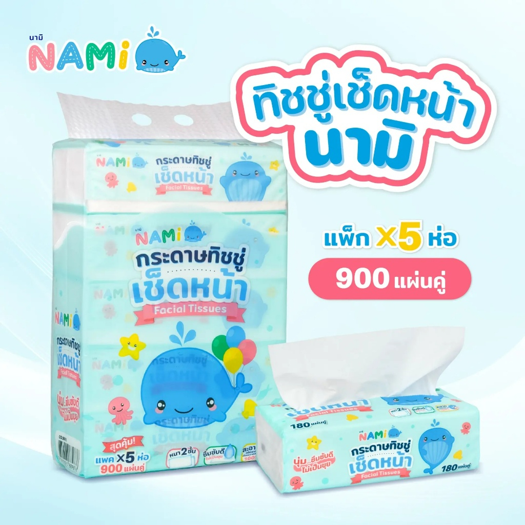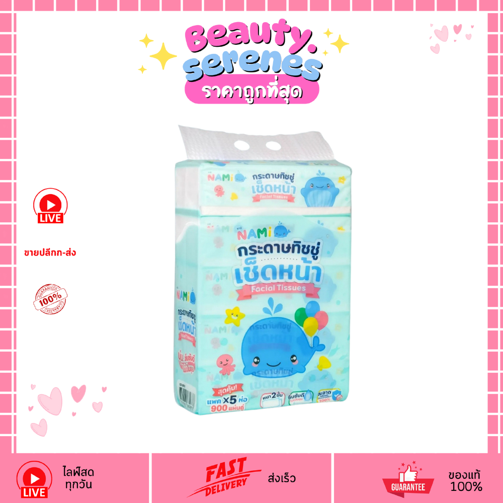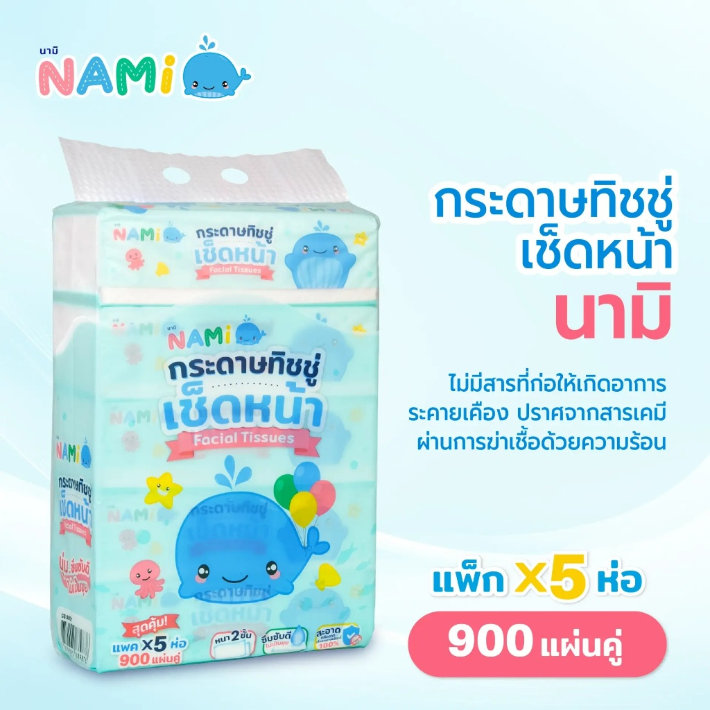 (แพค 5 ห่อ) Nami นามิ ทิชชู่เช็ดหน้าแห้ง 900 แผ่นคู่