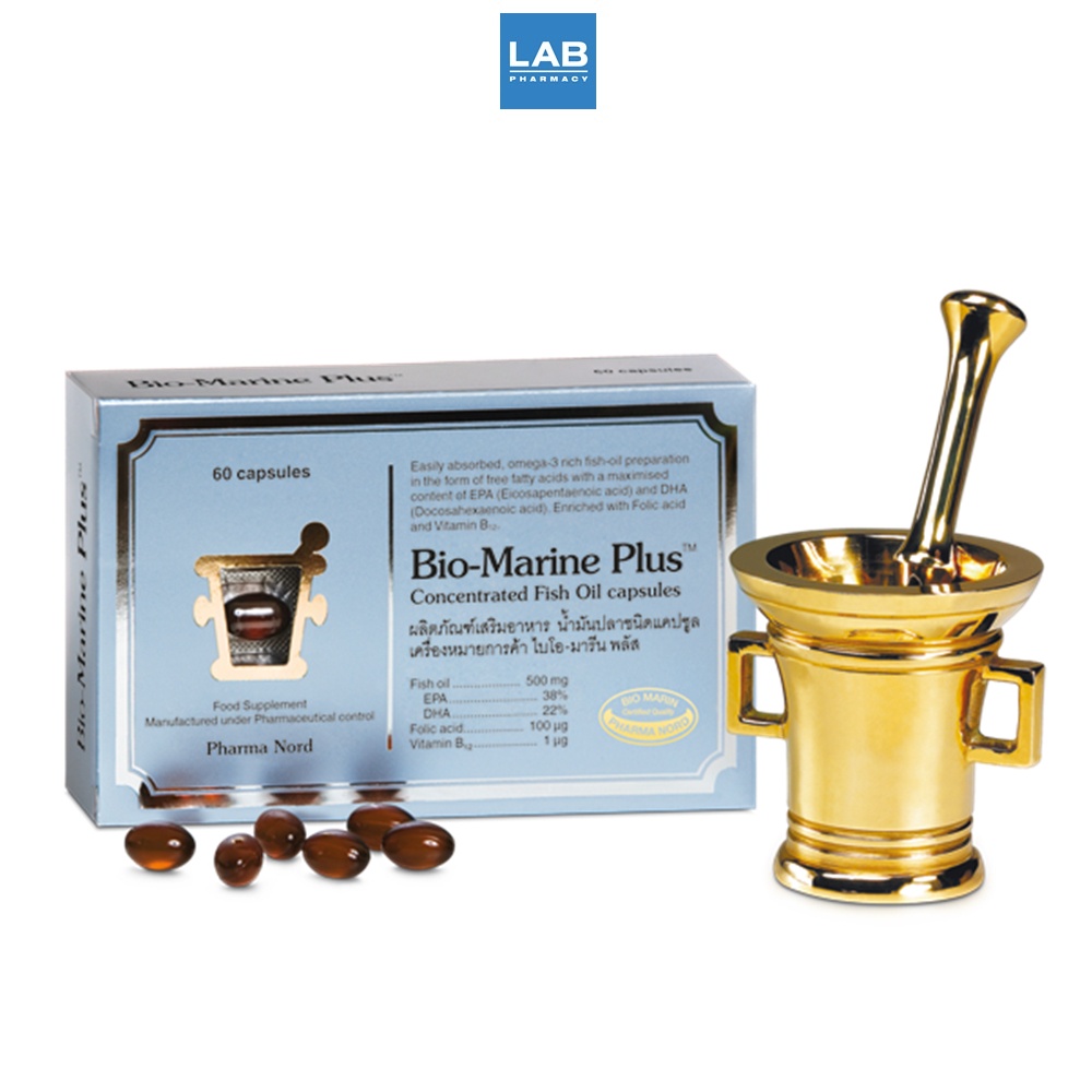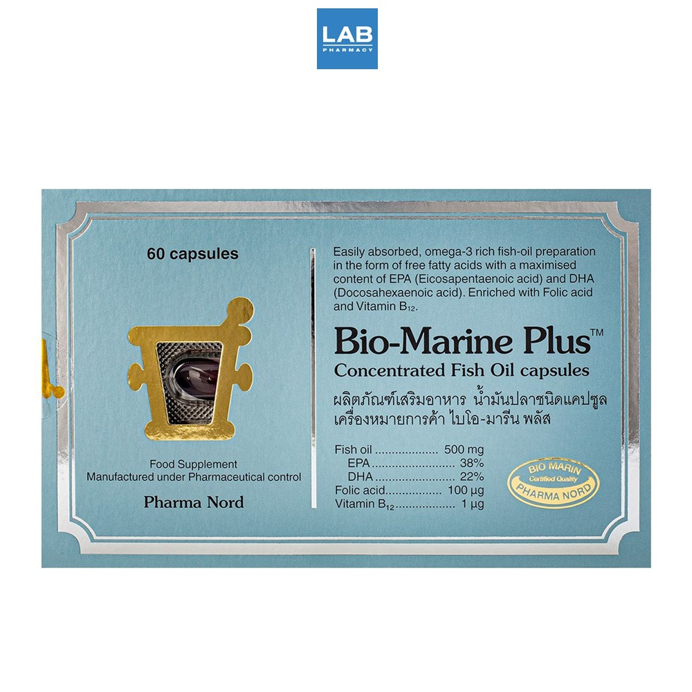 Pharma Nord Bio-Marine Plus 60 Capsules - ฟาร์มา นอร์ด ไบโอ-มารีน พลัส ผลิตภัณฑ์เสริมอาหาร น้ำมันปลาเข้มข้นบริสุทธิ์ พร้อมวิตามิน บี 1 กล่อง 60 แคปซูล