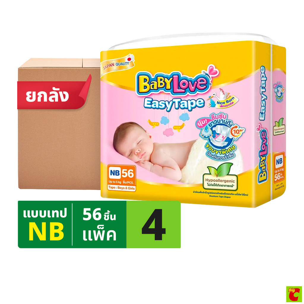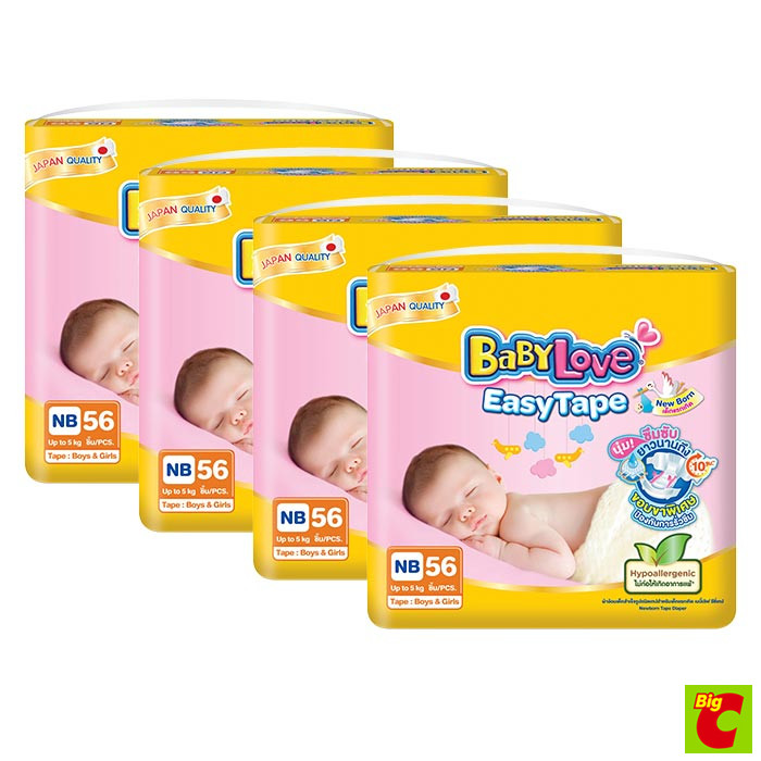 เบบี้เลิฟ อีซี่ เทป ผ้าอ้อมเด็ก จัมโบ้แพ็ค ขนาด NB - S x 4 แพ็ค