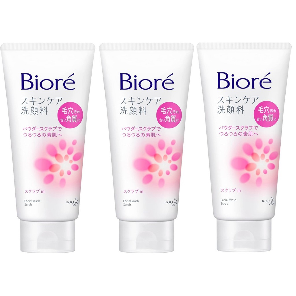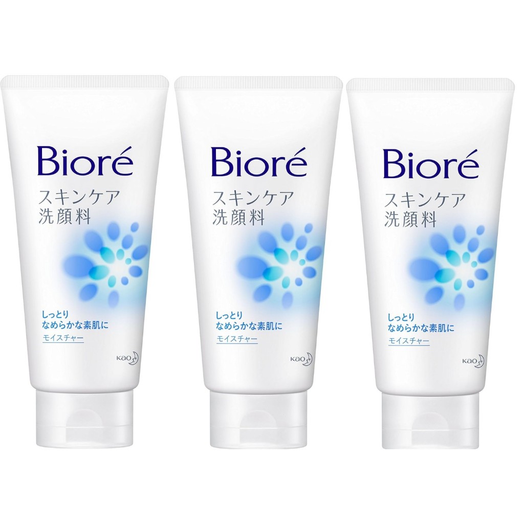 บิโอเร สกินแคร์ คลีนเซอร์ สำหรับล้างหน้า 130g มอยส์เจอร์/มีสครับ เซ็ต 3 ชิ้น เครื่องสำอาง ญี่ปุ่น