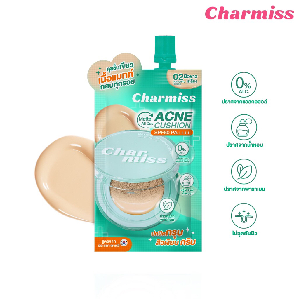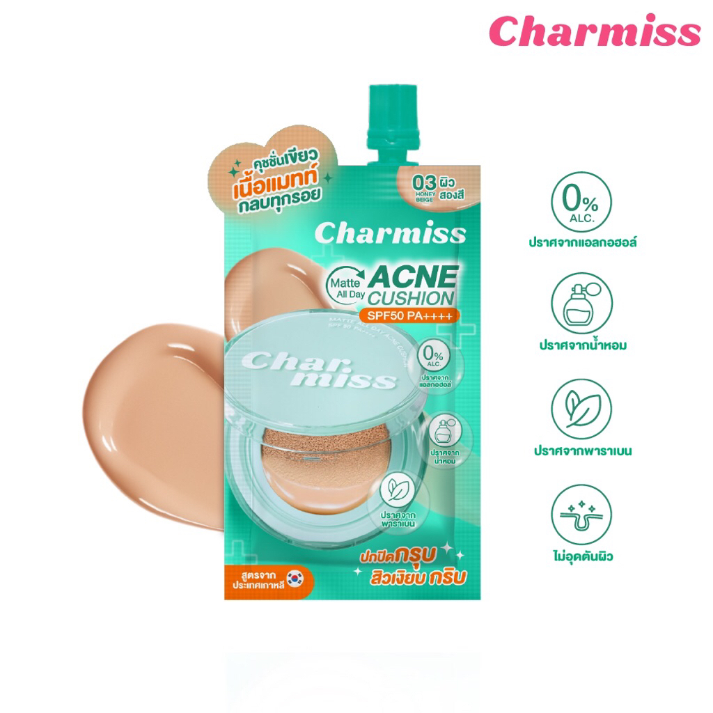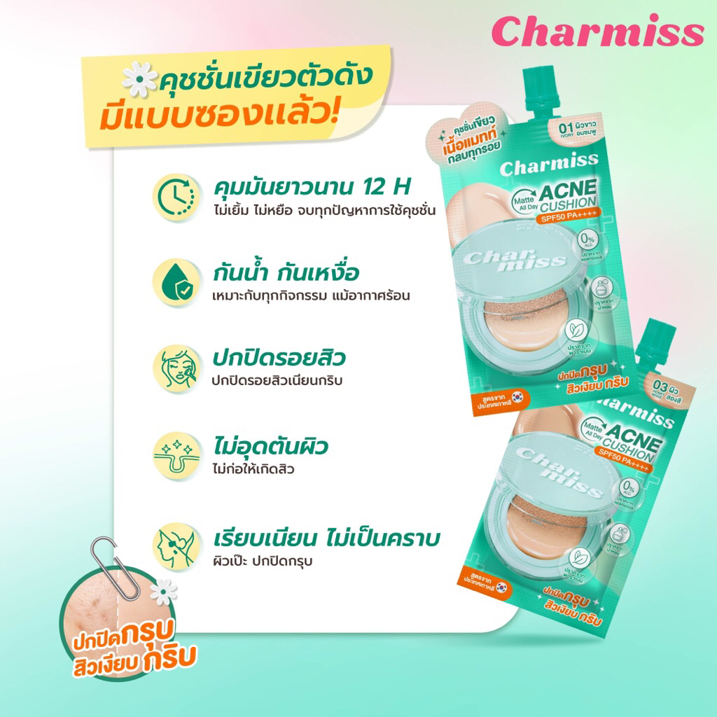 Charmiss Matte All Day Acne Cushion SPF 50 PA++++ คุชชั่นสำหรับผิ วเป็นสิว เนื้อแมทท์ ชนิดซองขนาด 5 กรัม