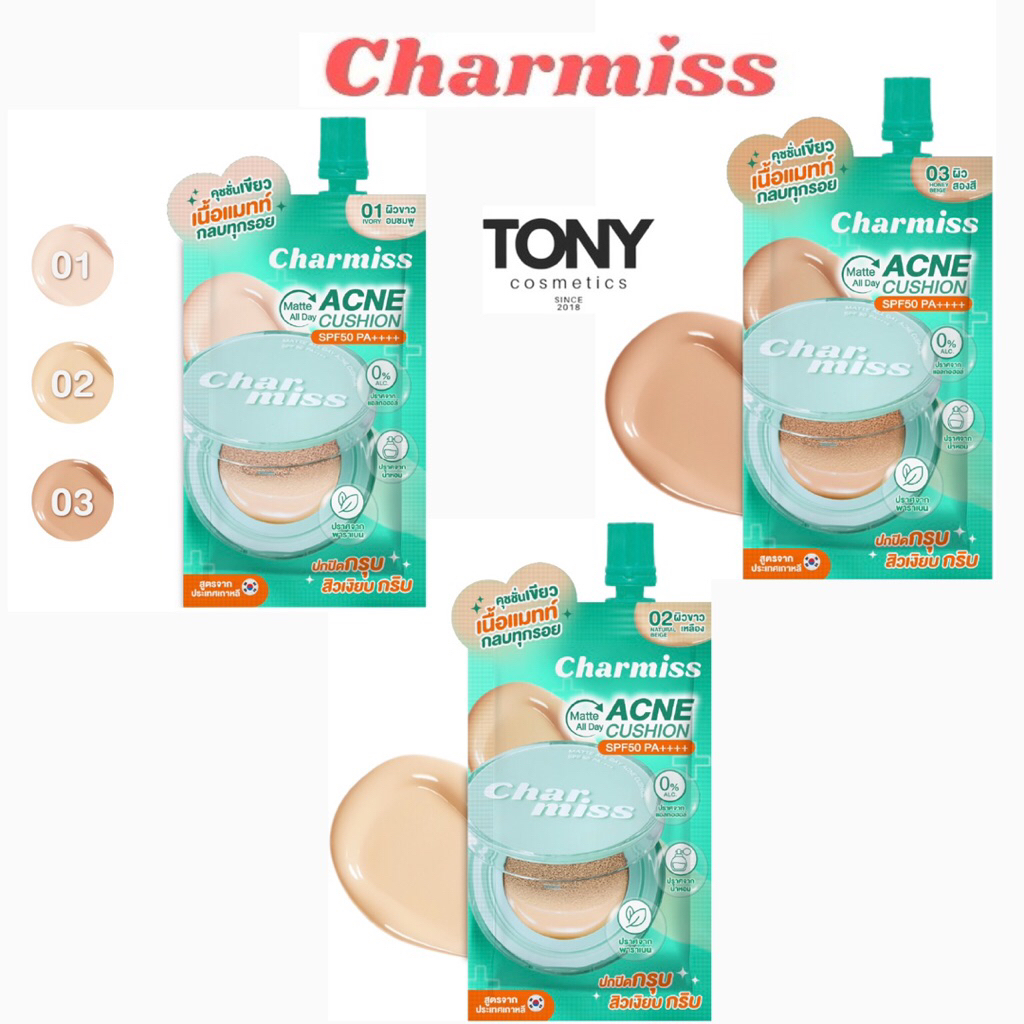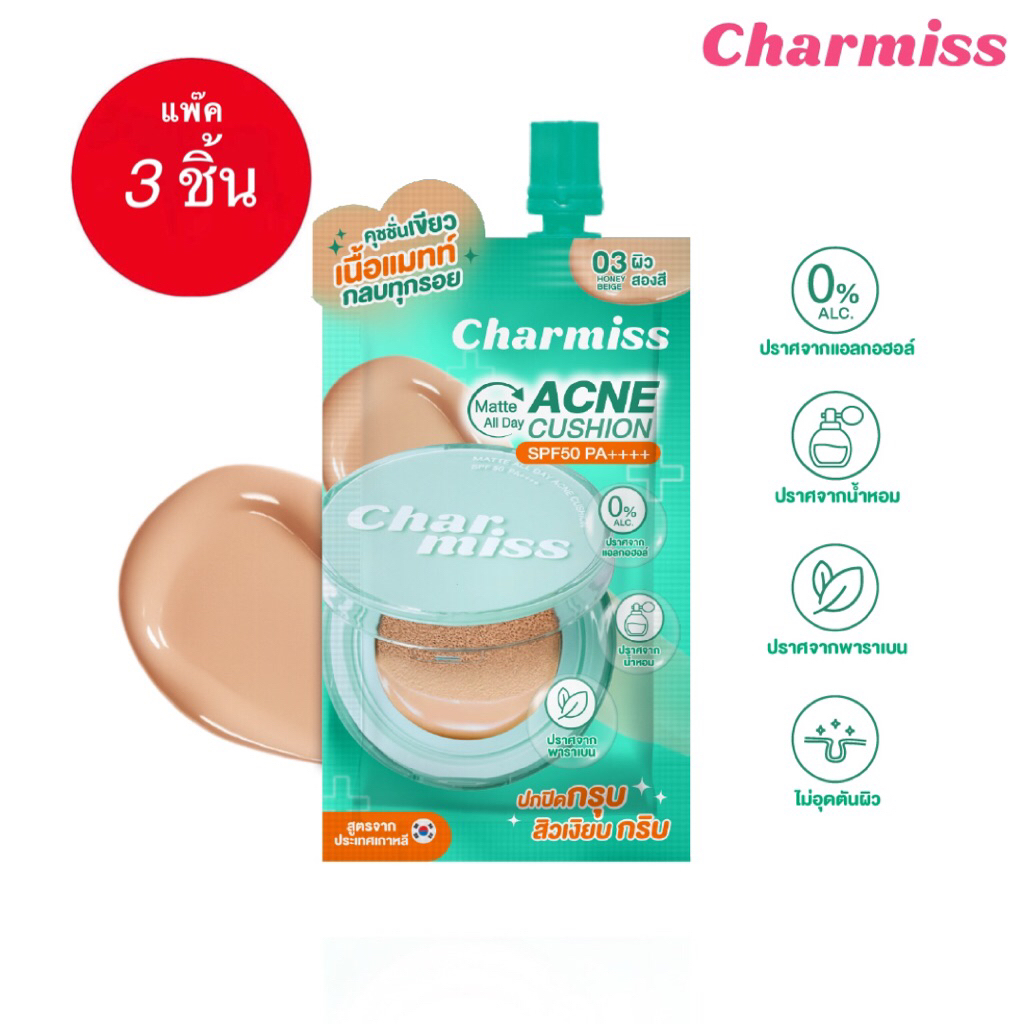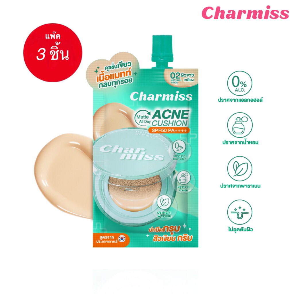 Charmiss Matte All Day Acne Cushion SPF 50 PA++++ คุชชั่นสำหรับผิ วเป็นสิว เนื้อแมทท์ ชนิดซองขนาด 5 กรัม