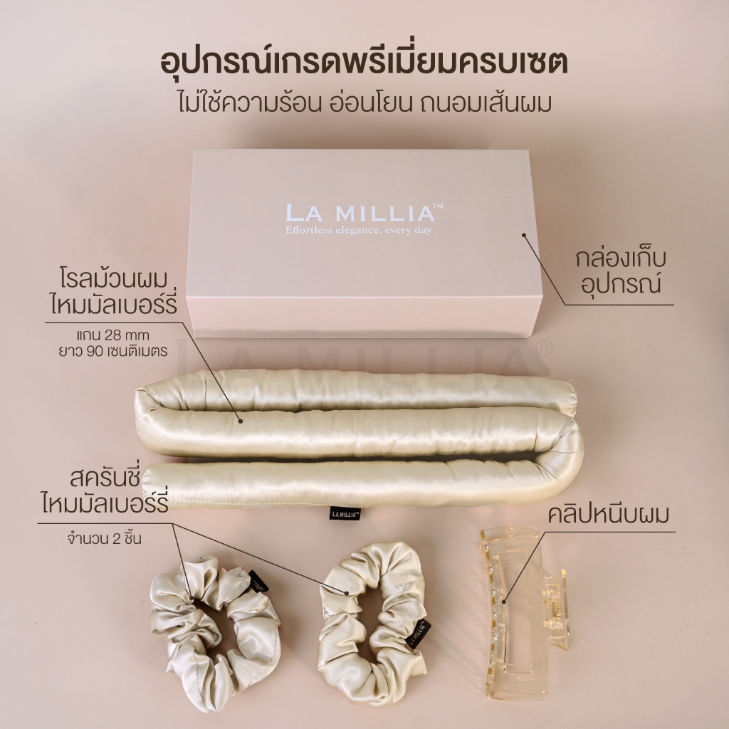 [ไหมมัลเบอร์รี่ แท้ + ฟรีกล่องเก็บ] LA MILLIA Mulberry Silk Hair Curler Set ลา มิลเลีย โรลม้วนผม ผมลอน ไม่ใช้ไฟฟ้า