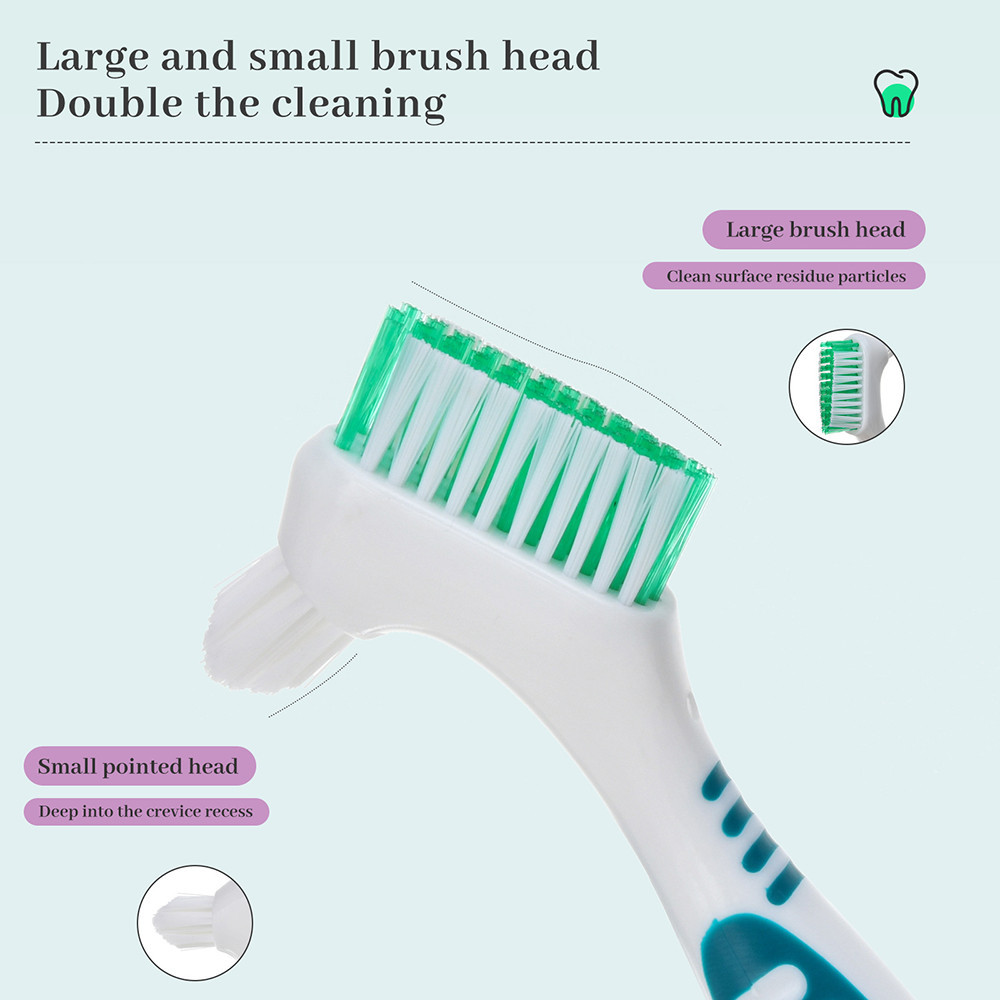 ฟันปลอมแปรงสีฟันแปรงทําความสะอาดฟัน Oral Care Non-slip Handle Dual หัว Antibiotic ฟันปลอมทําความสะอาดแปรง Multi-Layered ขนแปรง