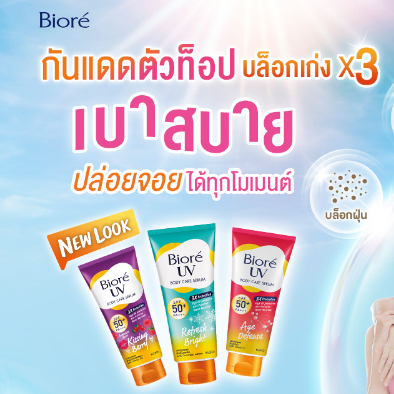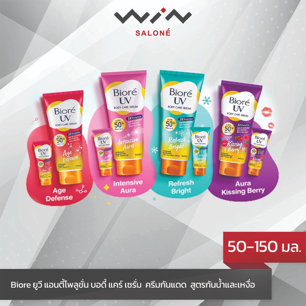 Biore บิโอเร ยูวี บอดี้ แคร์ เซรั่ม 50-150 มล. ครีมกันแดด สูตรกันน้ำและเหงื่อ SPF50+ PA+++โฉมใหม่!!