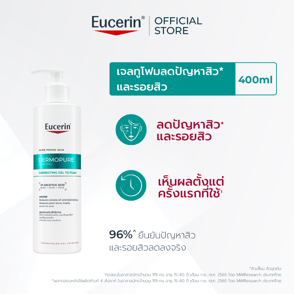 Eucerin DERMOPURE CLINICAL CORRECTING GEL TO FOAM 400 ML เจลโฟมลดปัญหาสิว และรอยสิว