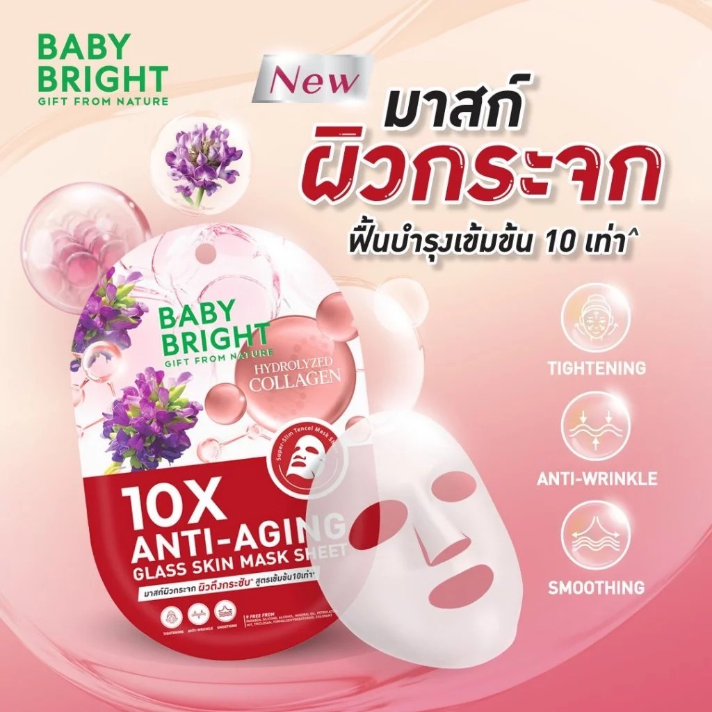 🔥แท้/ถูกที่สุด/ไลฟ์ทุกวัน🔥(1ซอง) Baby Bright 10X Brightening Glass Skin Mask Sheet 20g