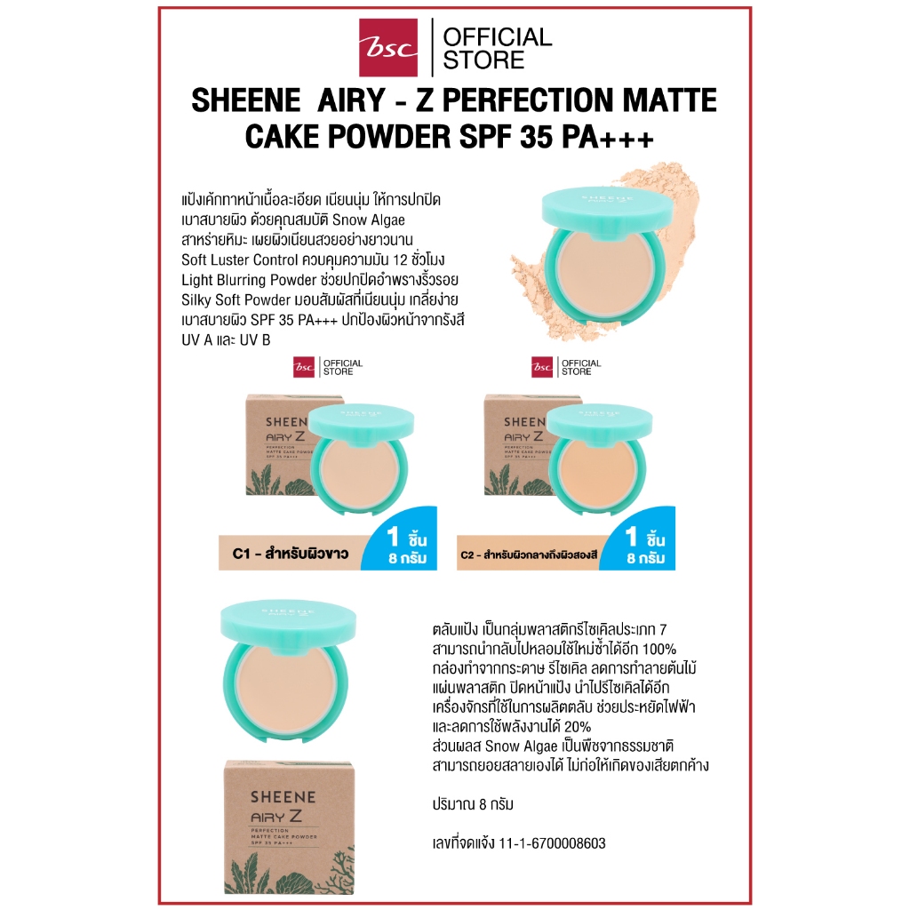 SHEENE AIRY - Z PERFECTION MATTE CAKE POWDER SPF 35 PA+++ แป้งเค้กทาหน้าเนื้อละเอียดเนียนนุ่มปกปิด