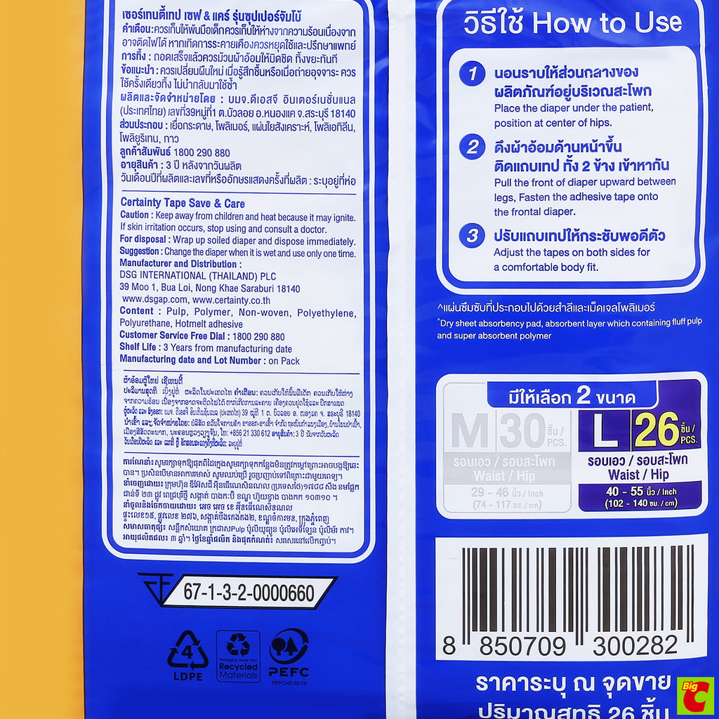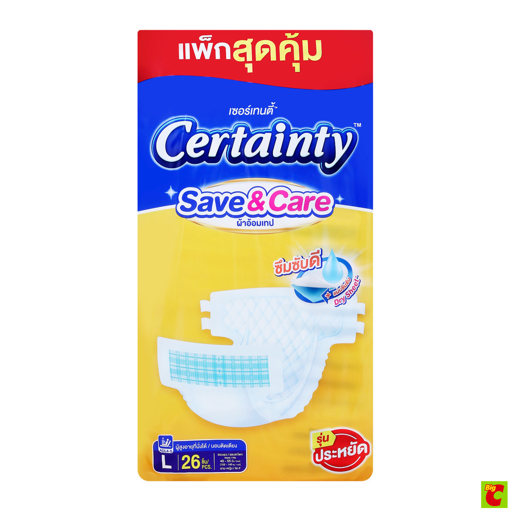 เซอร์เทนตี้ เซฟ แอนด์ แคร์ ผ้าอ้อมเทป ขนาด L แพ็ค 26
