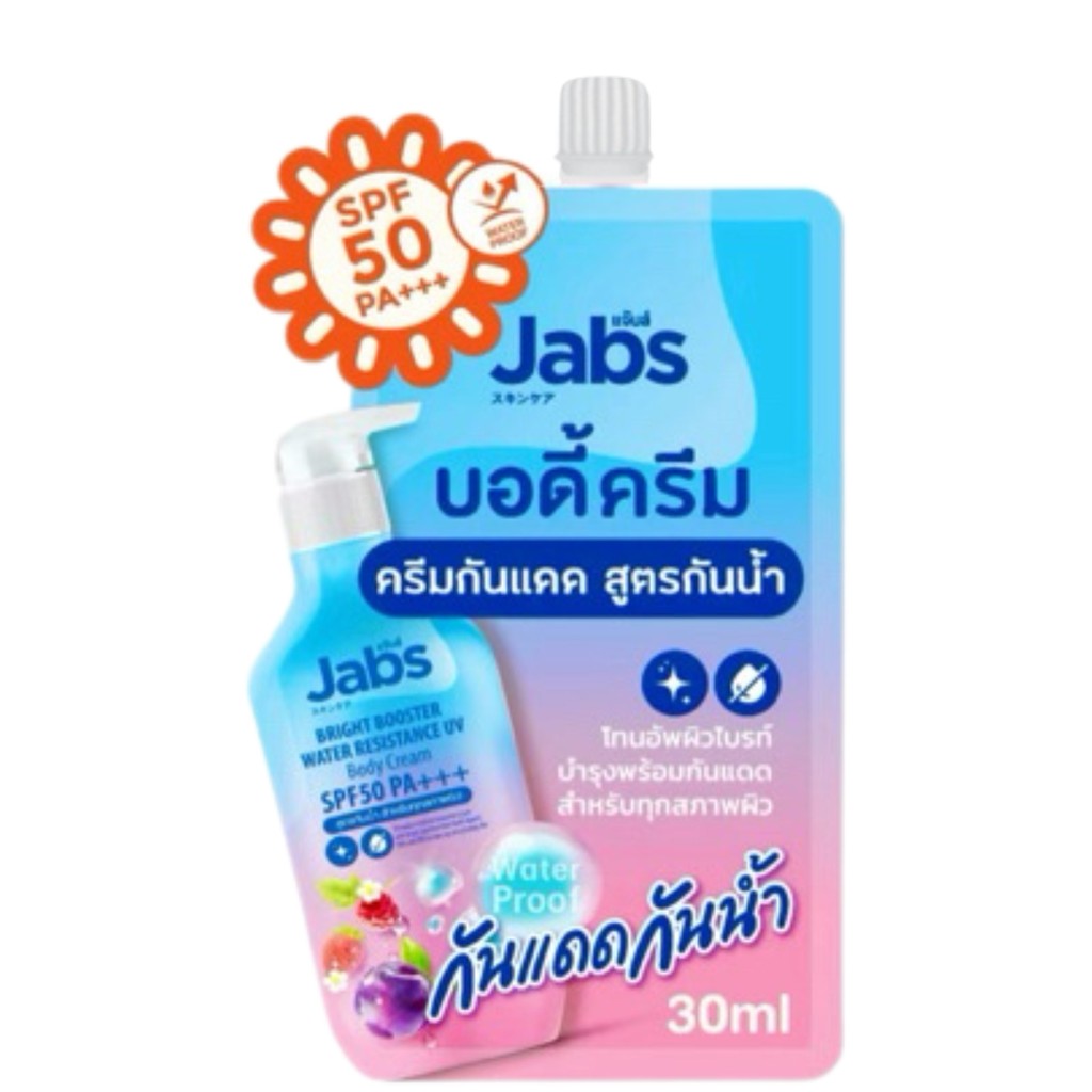 Jabs Bright Booster UV แจ๊บส์ กันแดด แบบซอง แบบกล่อง ครีม แจ้บ ครีมกันแดด 3 สูตร SPF 50+ PA+++