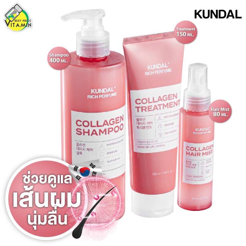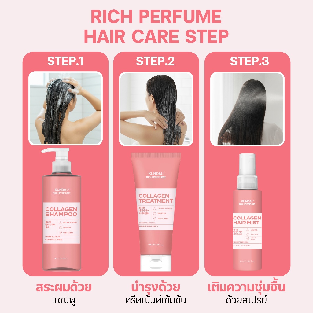 Kundal Rich Perfume Collagen Shampoo/Treatment/Hair Mist Cherry Blossom คุมดัล ริช เพอร์ฟูม คอลลาเจน