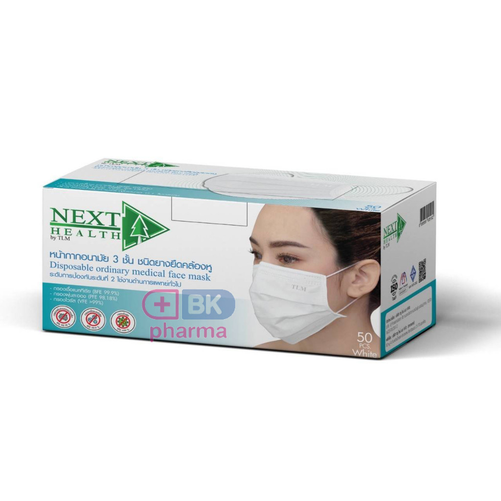 หน้ากากอนามัย ทางการแพทย์ NEXT HEALTH หน้ากากอนามัยทางการแพทย์ TLM / S-flex Premium 50 ชิ้น 1 กล่อง / Dafi 3D 1 ชิ้น
