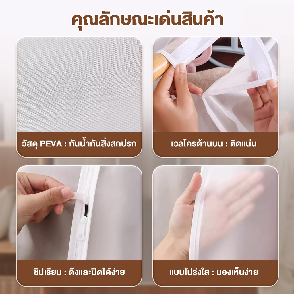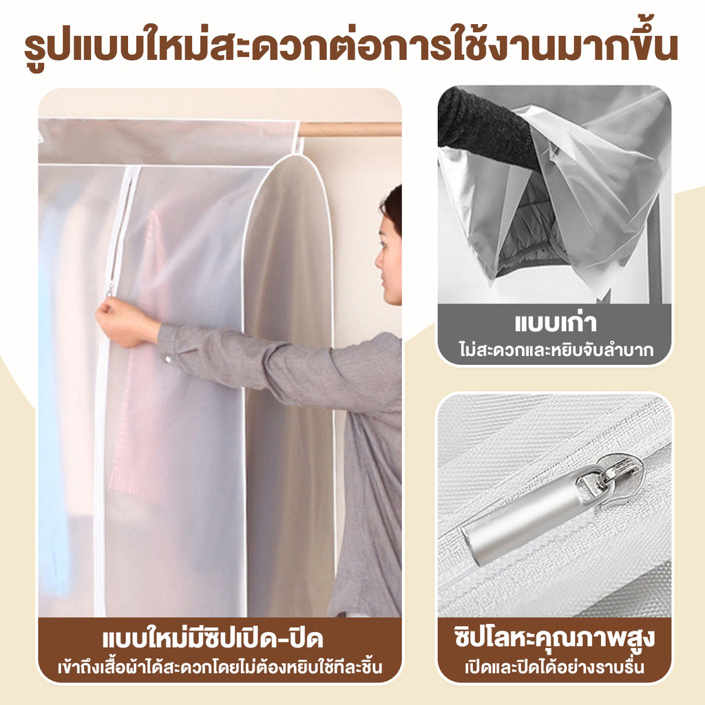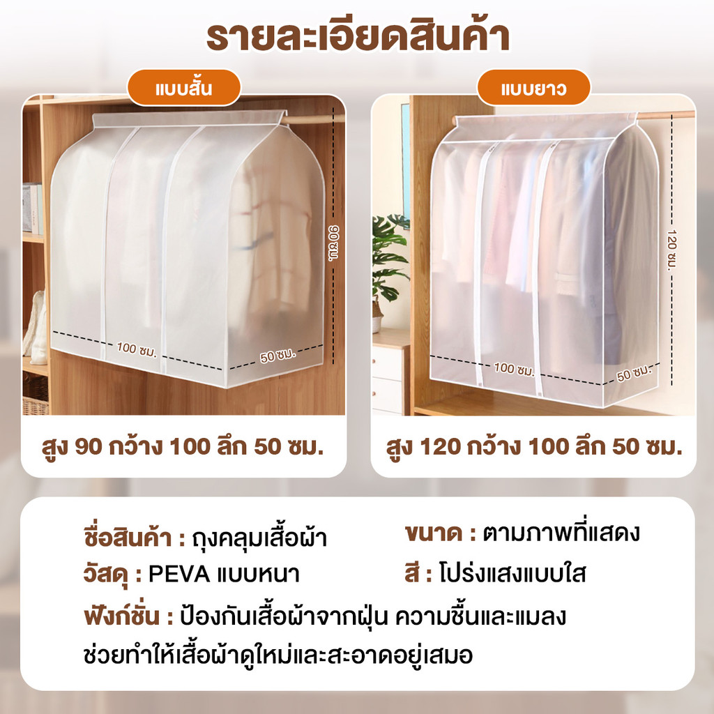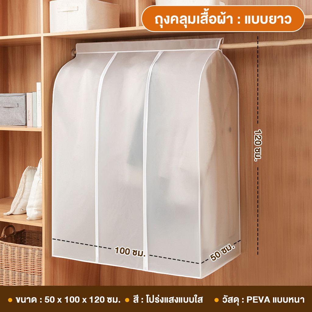 ถุงคลุมเสื้อผ้า ถุงคลุมเสื้อผ้า กันน้ํา กันฝุ่น ถุงคลุมเสื้อแบบใส ผ้าคลุมเก็บเสื้อผ้า หนาและรักษาสิ่งแวดล้อมPEVA