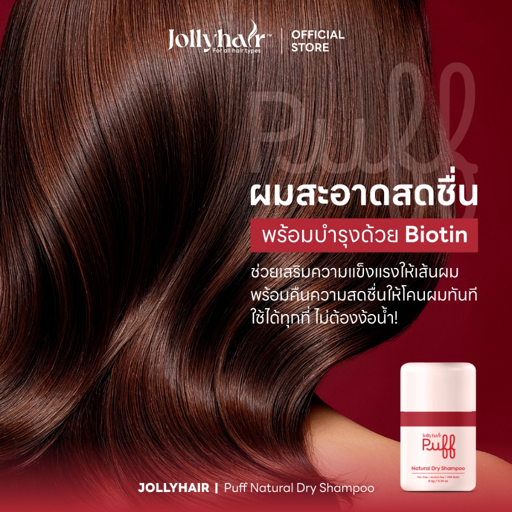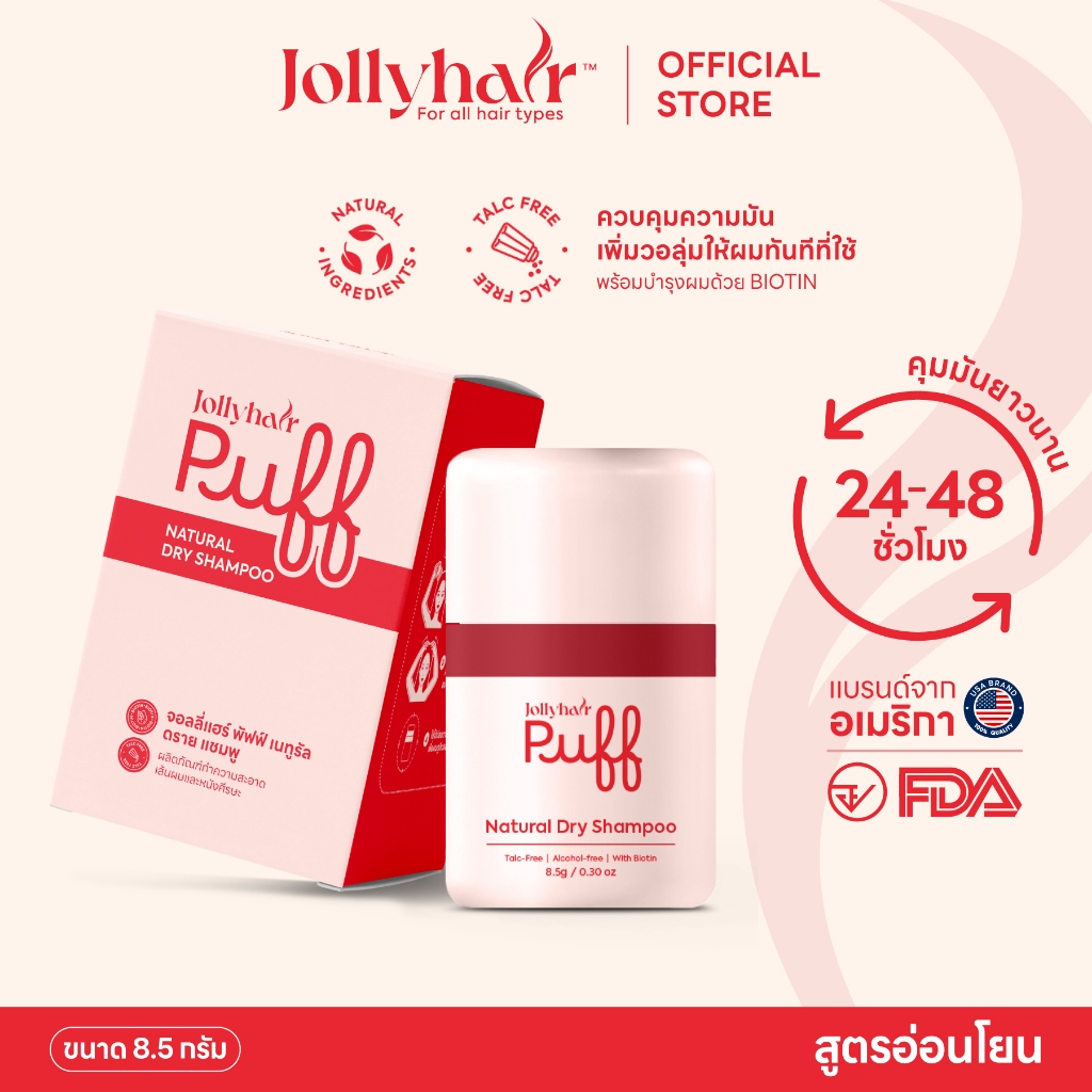Jollyhair พัฟดรายแชมพู Biotin ลดผมมันทันที ยกโคนผมพองสวย ไม่ทิ้งคราบขาว 8.5g