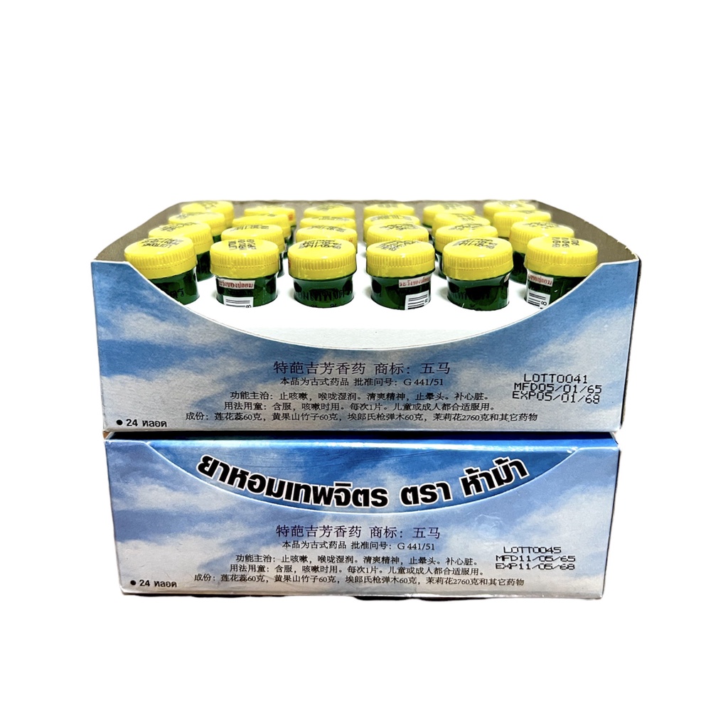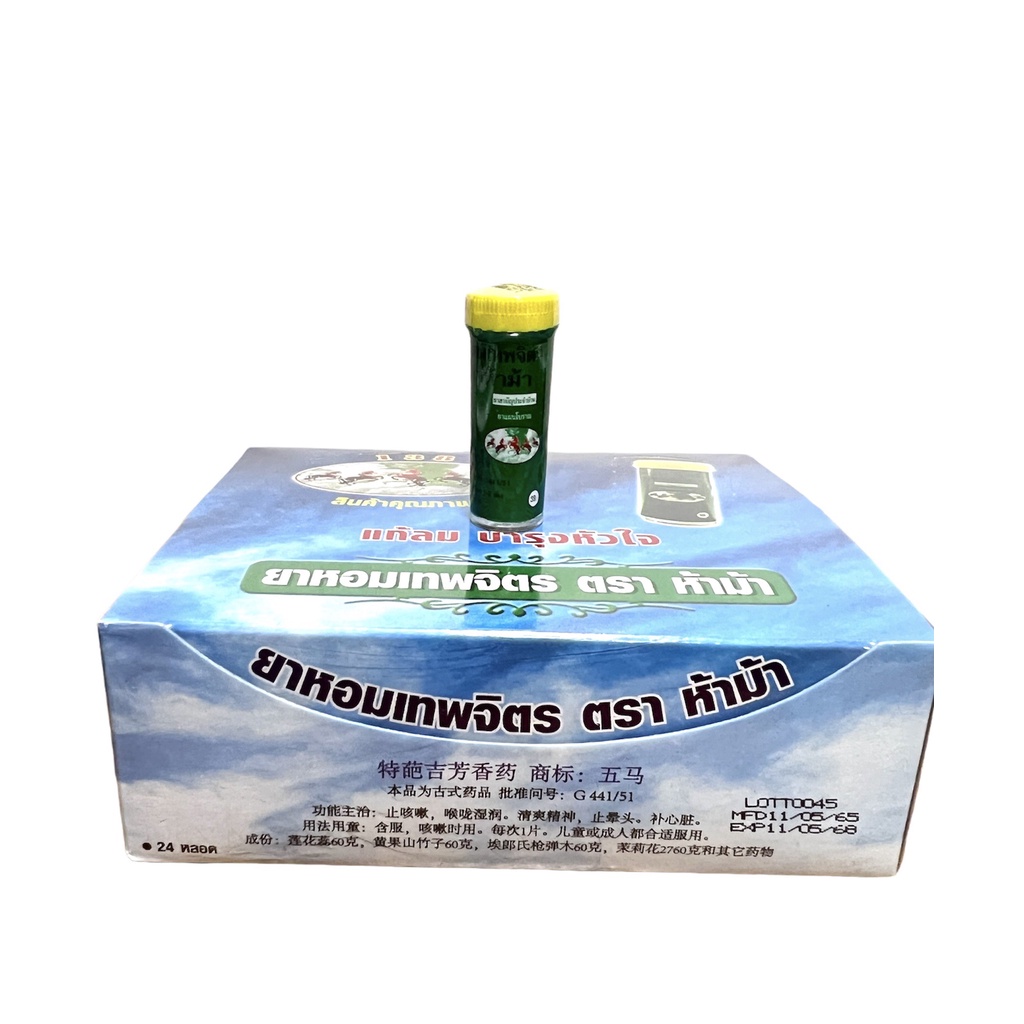 ยาหอมเทพจิตร ตราห้าม้า (30 เม็ด) <กล่อง 24หลอด>