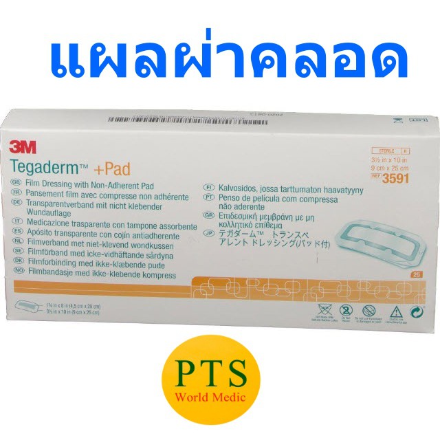 3M Tegaderm + Pad 9x25 cm (3591) แผ่นฟิล์มกันน้ำพร้อมแผ่นซับ แผลผ่าคลอด (1 แผ่น)