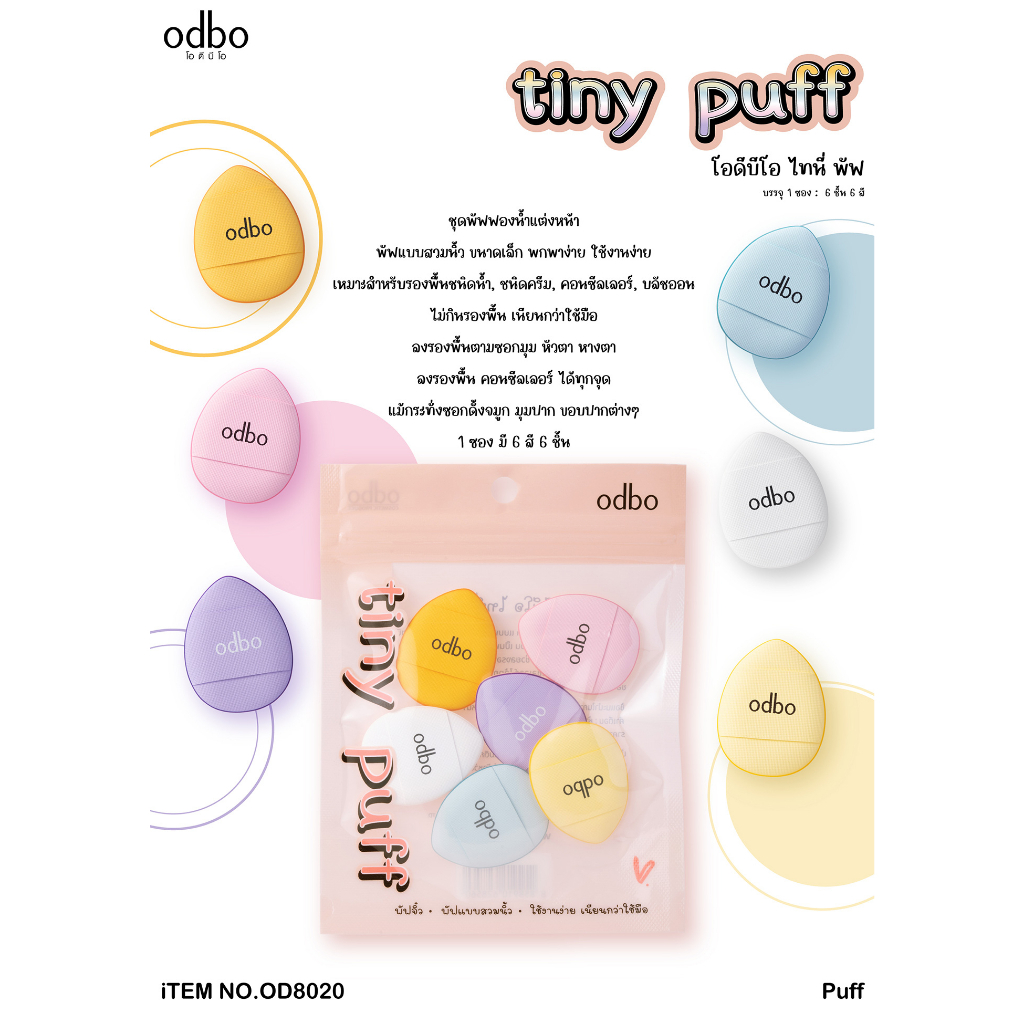 โอดีบีโอ ไทนี่ พัฟจิ๋ว พัฟแต่งหน้า ขนาดเล็ก แบบสวมนิ้ว (1ซองมี6ชิ้น) OD8020 odbo Tiny Puff