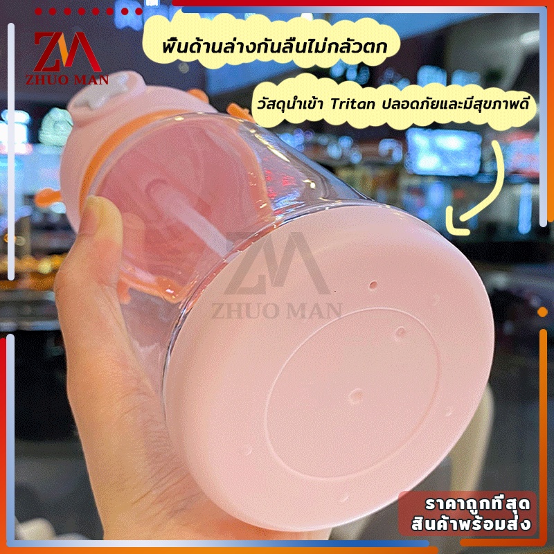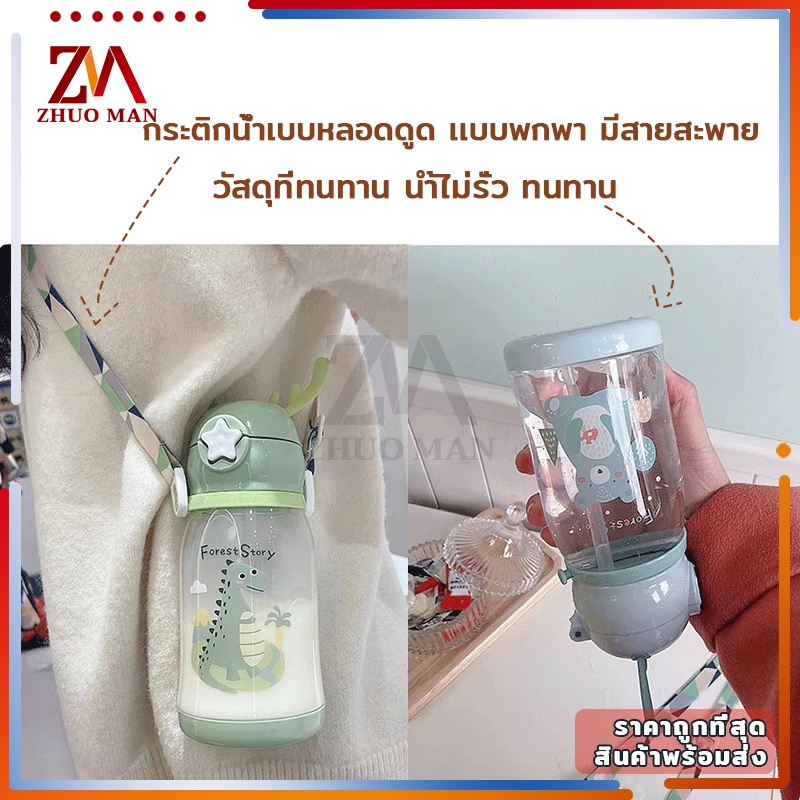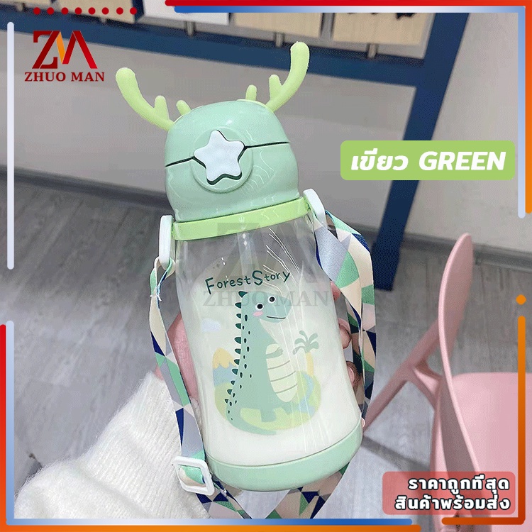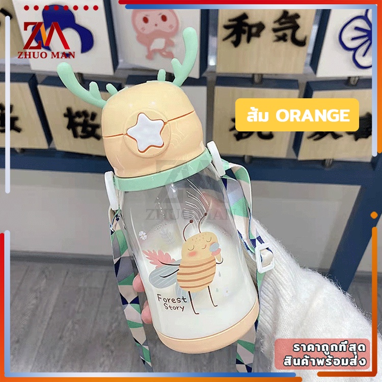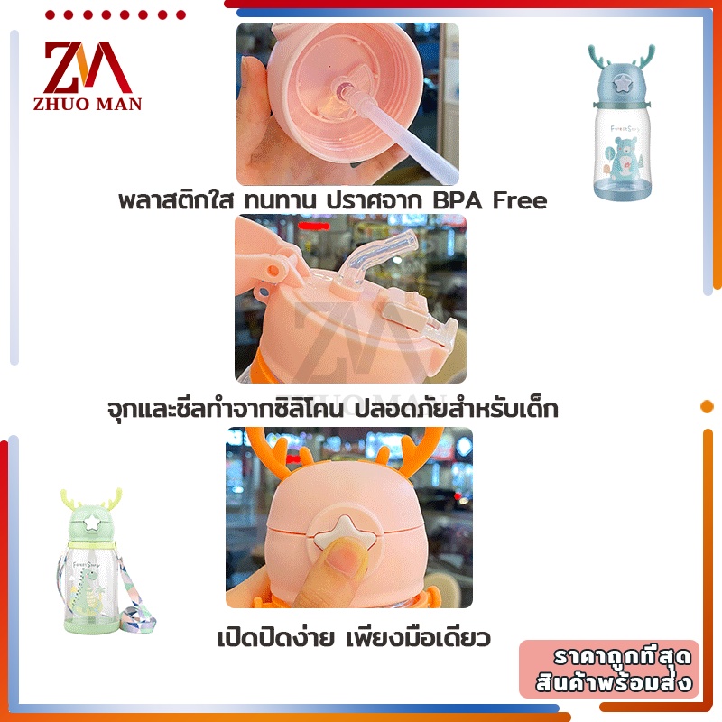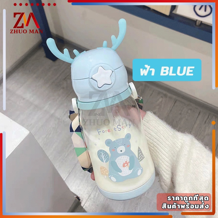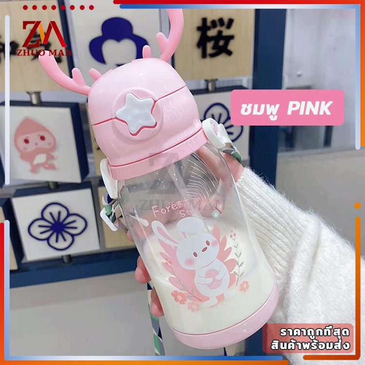 ขวดน้ำของเด็ก กระติกน้ำ พร้อมหลอดดูด ขวดน้ำ เขากวางอ่อนซิลิโคนน่ารัก ความจุขนาดใหญ่ 600มล การออกแบบสายรัดพกพาสะดวก
