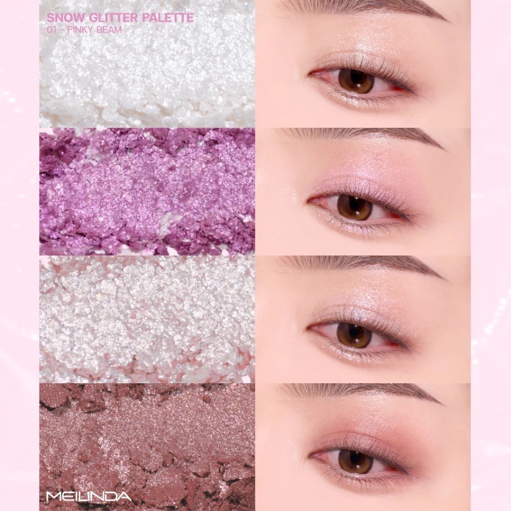 ถูก/แท้/มีไลฟ์ พาเลทท์ MEILINDA Snow Glitter Palette พาเลทอายแชโดว์ กลิตเตอร์สโนว์ ตาวิ้ง เปล่งประกาย สีชัด ติดทน