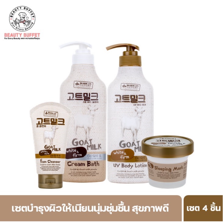 [ เซทสุดคุ้ม! ] BEAUTY BUFFET MADE IN NATURE GOAT MILK เมดอินเนเจอร์ ชุดบำรุงผิวหน้าและผิวกายสูต รน้ำนมแพะ (4 Pcs.)