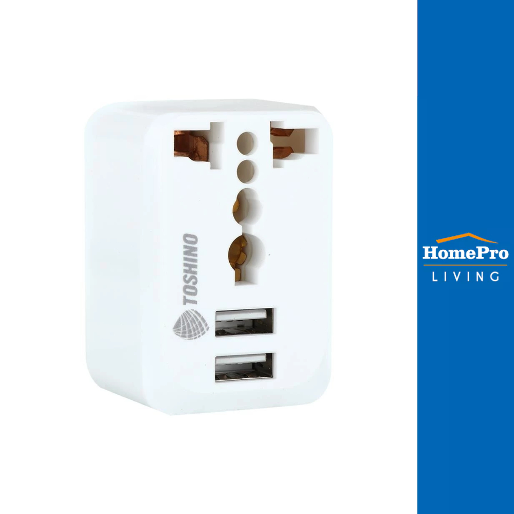 TOSHINO ปลั๊กแปลง 2 ขาแบน 2 USB 2.1A สีขาว จัดส่งโดย HomePro
