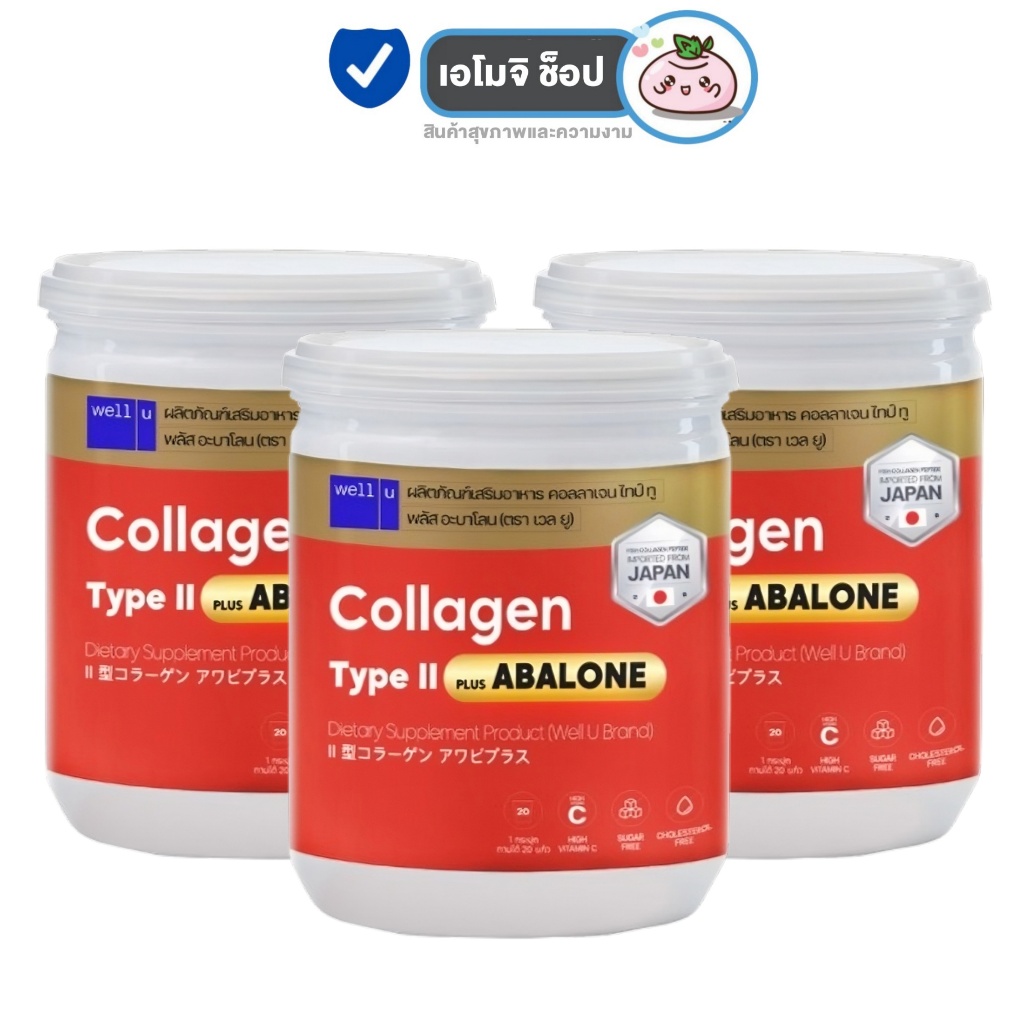 WELL-U Collagen Type 2 Plus Abalone เวล ยู คอลลาเจน ไทป์ทู พลัส อบาโลน [อบาโลน กระปุกขาวส้ม 100 กรัม] [3 กระปุก]