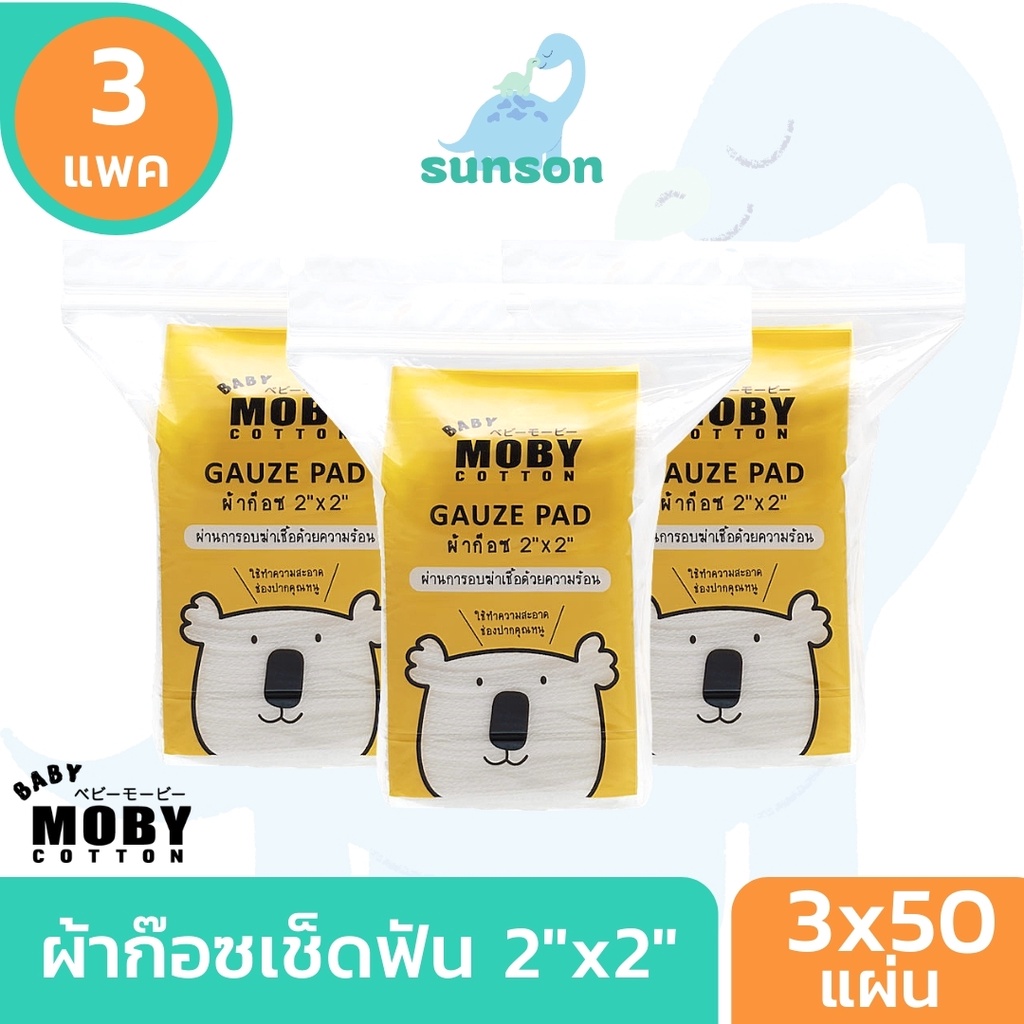 เกรดพรีเมี่ยม❤️ Baby Moby ผ้าก๊อซ ทำความสะอาดช่องปาก 2"x2" เช็ดฟัน ลิ้น เหงือก กระพุ้งแก้ม (150 แผ่น / 3 ห่อ)