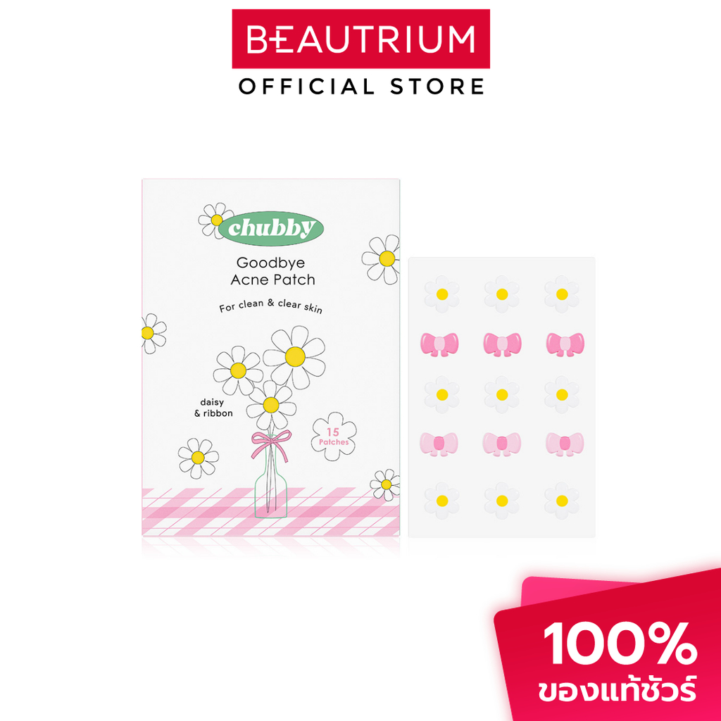 CHUBBY Goodbye Acne Patch Daisy & Ribbon ผลิตภัณฑ์แผ่นแปะดูดซับสิว 15Pcs