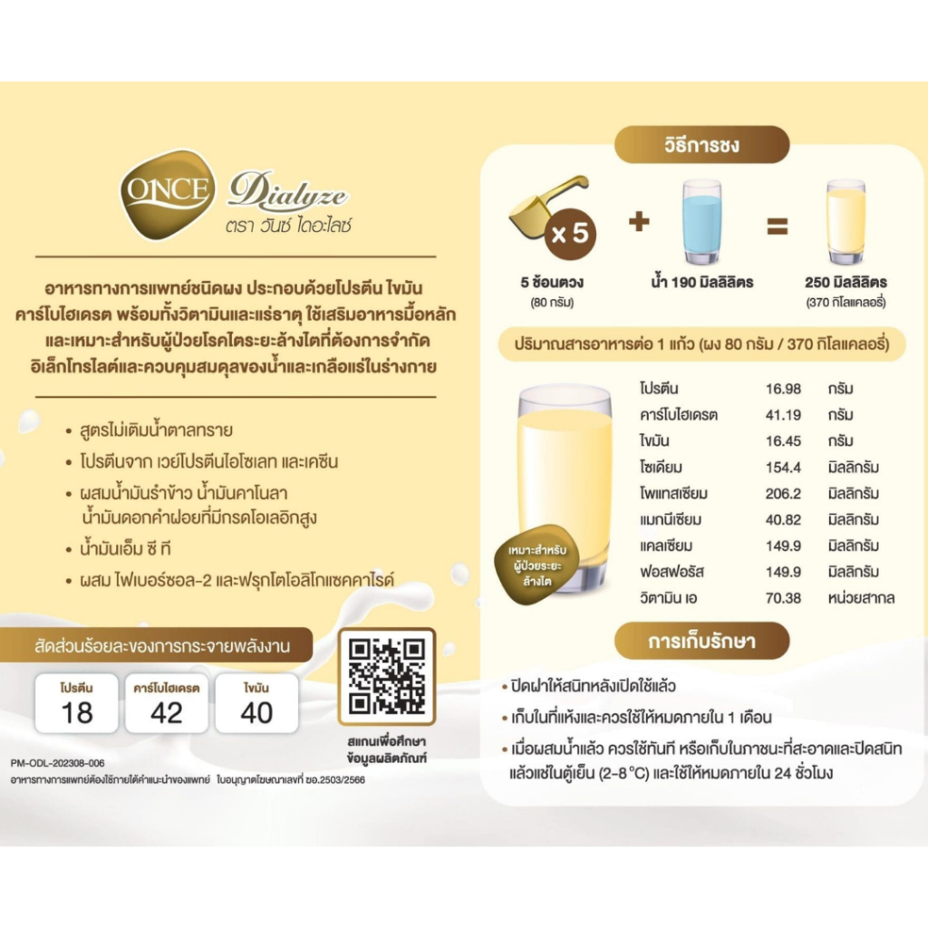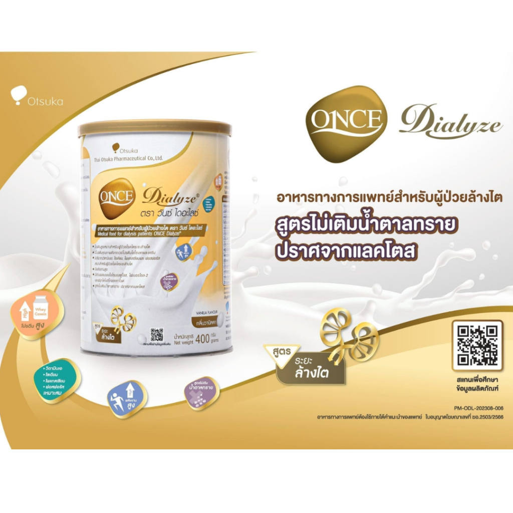 Otsuka Once Dialyze อาหารทางการแพทย์สำหรับผู้ป่วยล้างไต กลิ่นวานิลลา 400 กรัม