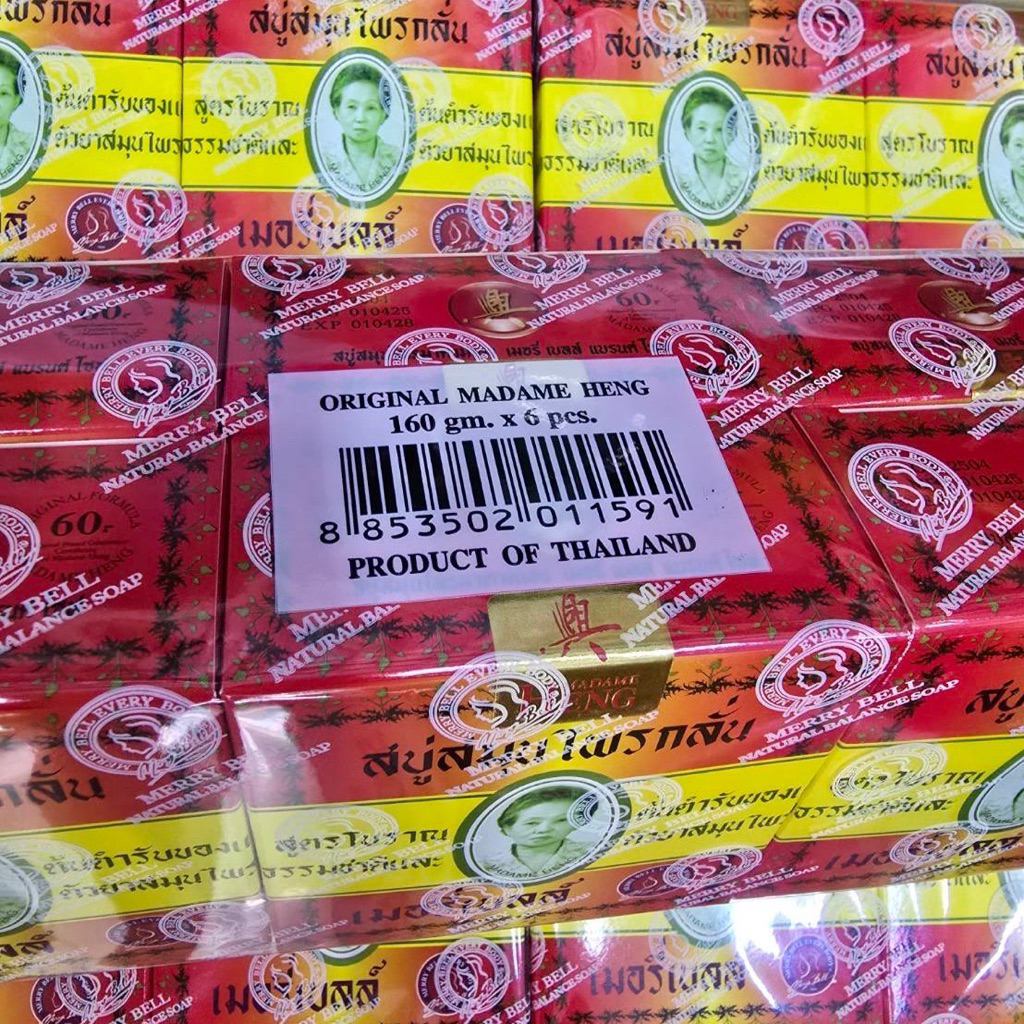 สบู่มาดามเฮง สบู่สมุนไพรกลั่น เมอรี่ เบลล์ 160 กรัม [ 1 แพ็ค 6 ก้อน ]
