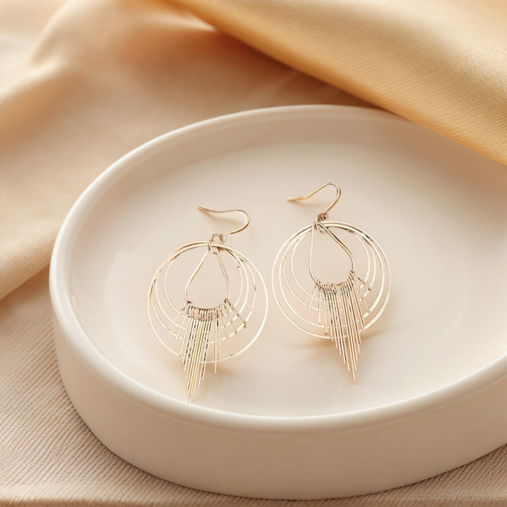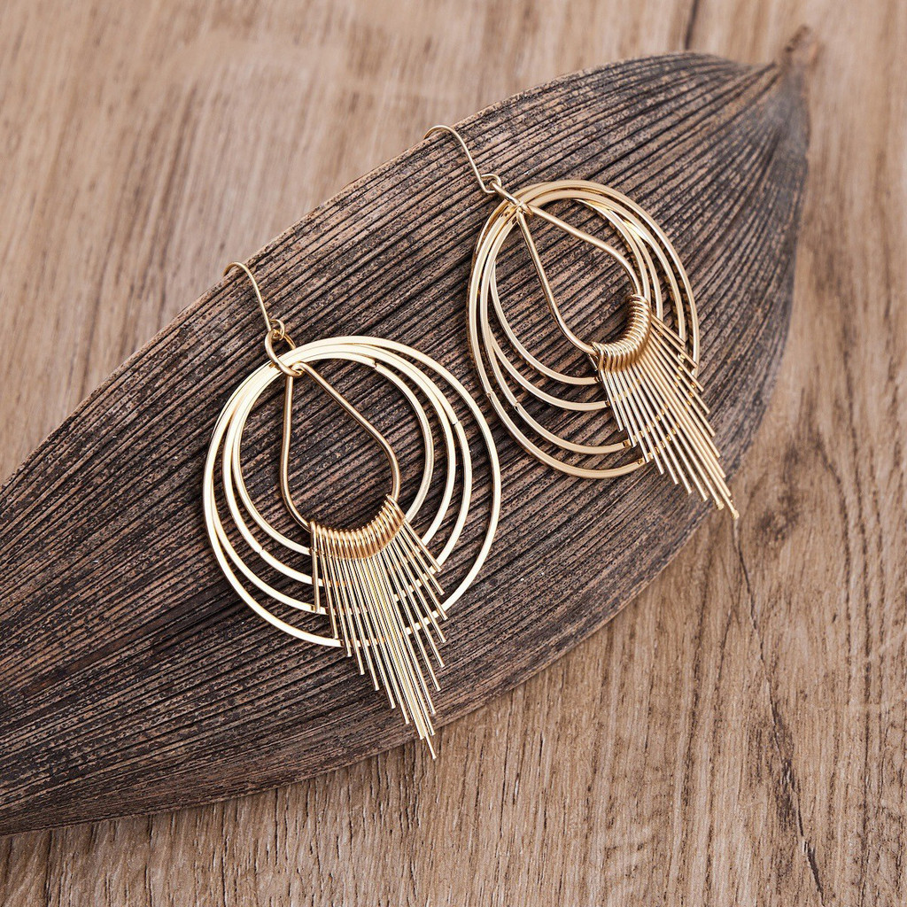 ต่างหูพู่หยดแบบโบฮีเมียนสไตล์ฮวงจุ้ย ทำจากเหล็กมือ เหมาะสำหรับโอกาสต่างๆ