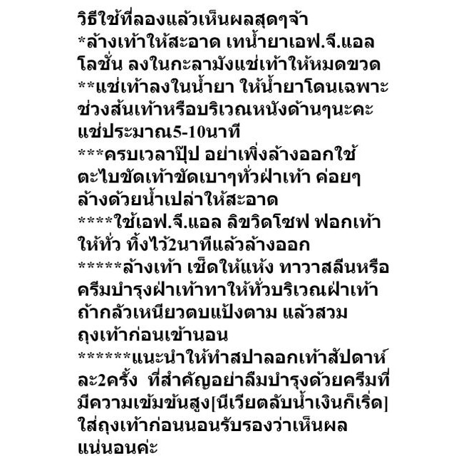 น้ำยาแช่เท้า F.G.L Lotion เอฟ.จี.แอล.โลชั่น สำหรับแช่ และ ทำความสะอาดส้นเท้า บำรุงและทำความสะอาดส้นเท้า สปาเท้า