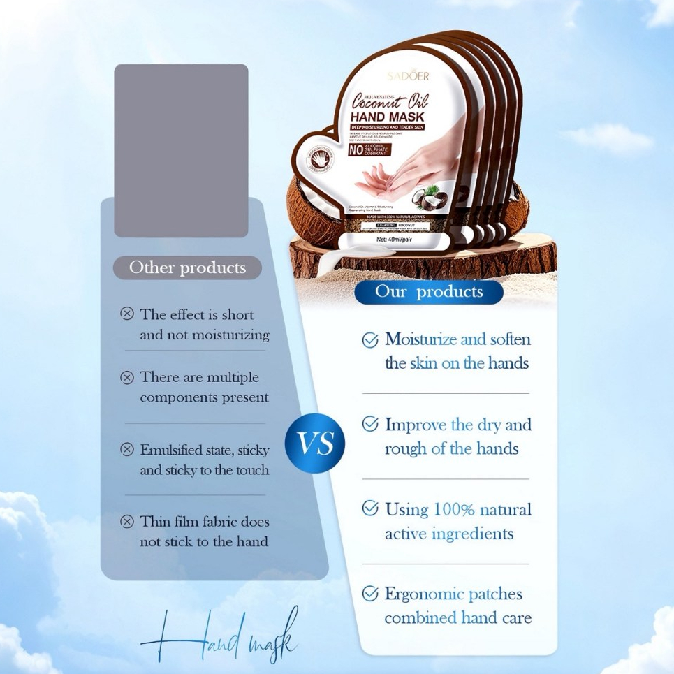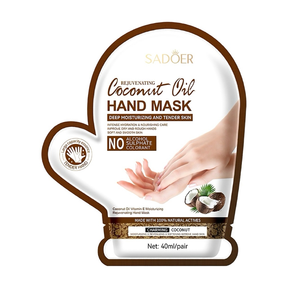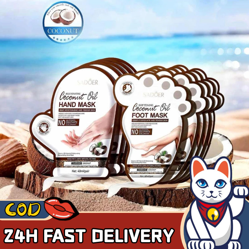 Lucky🐱SADOER มาส์กมือ มาส์กเท้า น้ำมันมะพร้าว VitaminE บำรุงผิว เพิ่มความชุ่มชื้ม ลดความหยาบ